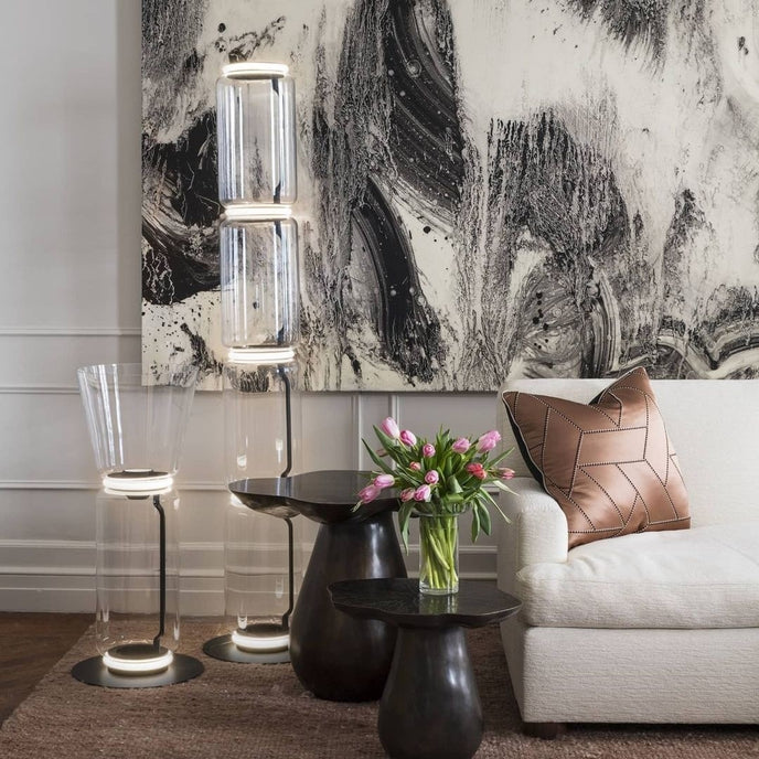 L'idée du maître designer Konstantin Grcic, le système d'éclairage futuriste Noctambule qui allie innovation, efficacité et esthétique. Son cylindre en verre transparent soufflé à la bouche est entouré d'une technologie LED discrète en haut et en bas, ce qui rend la base de la lampe élégante et étonnante. L'utilisateur peut attacher des composants supplémentaires au luminaire afin d'expérimenter différents styles d'éclairage. Cela permet de créer des colonnes de lumière à différentes hauteurs qui s'allument aux points d'intersection entre chaque module ou unité.