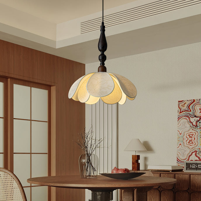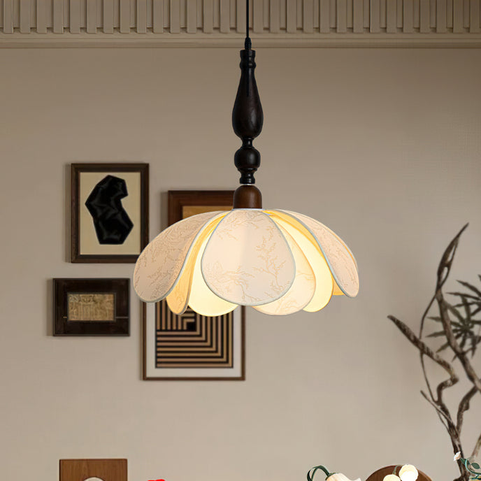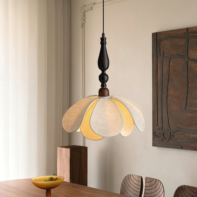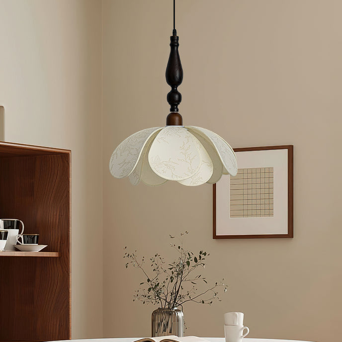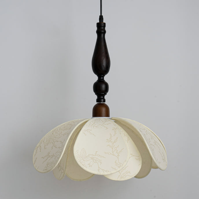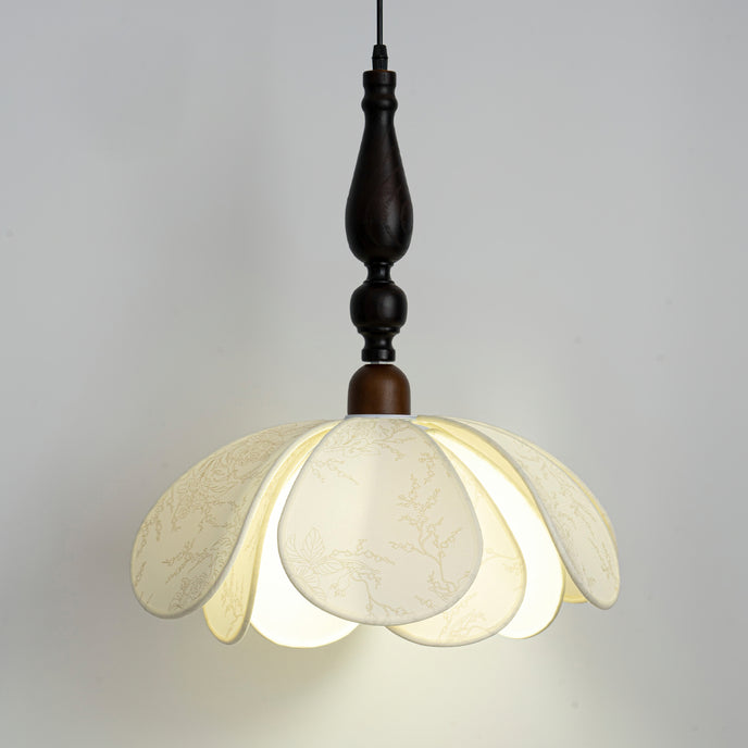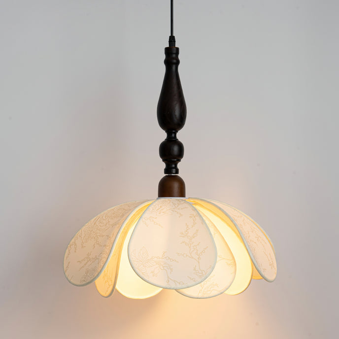 The Norvia Pendant Lamp from Mooijane blends vintage charm with natural elegance. Its high-quality fabric shade features delicate floral patterns, while a rich wooden fixture adds warmth and contrast. The flower-inspired design casts a soft, inviting glow, making it perfect for living rooms, dining areas, or bedrooms. Combining durability with refined style, it enhances any interior with cozy, romantic sophistication.