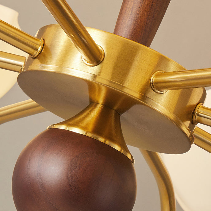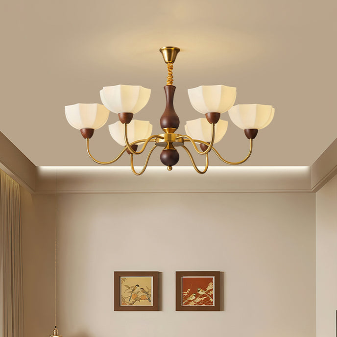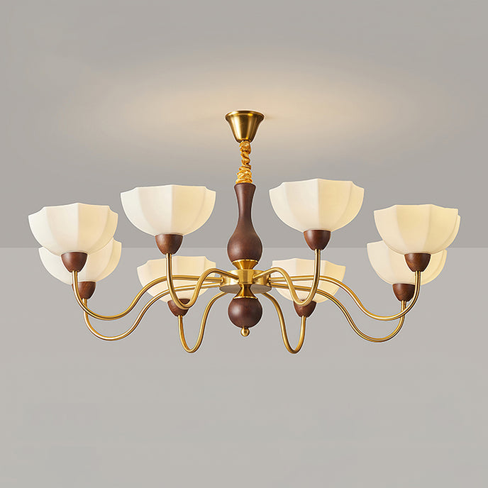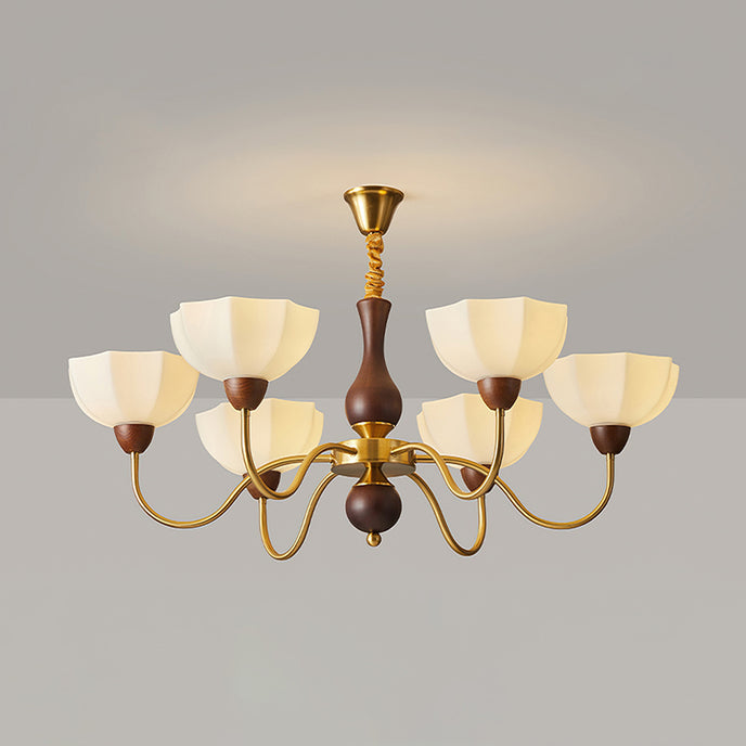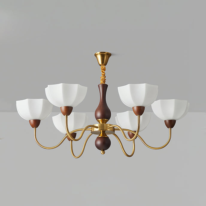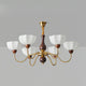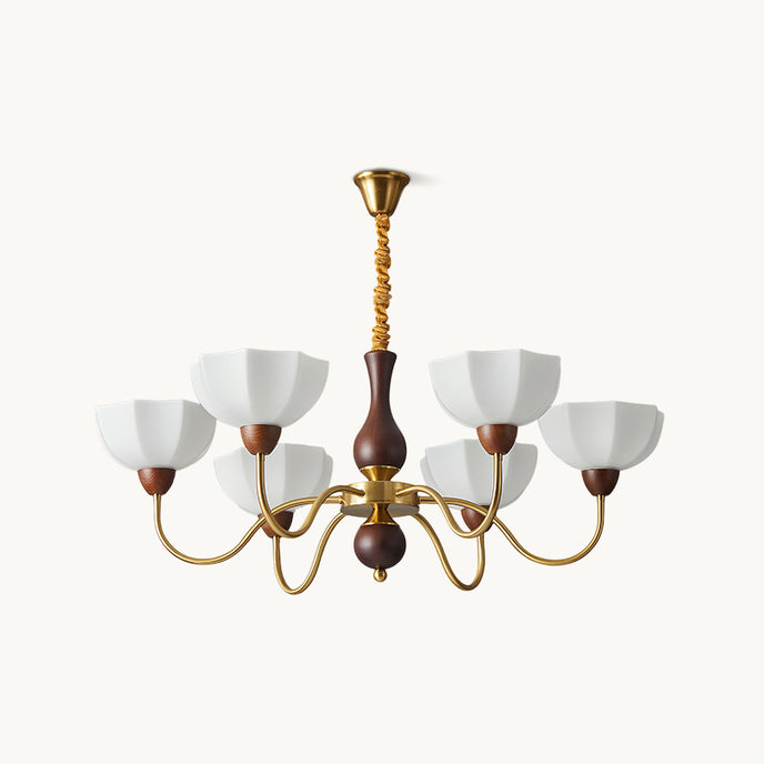 The Penton Glass Chandelier from Mooijane combines sleek metal and delicate glass for a modern yet elegant design. Golden metal arms complement petal-shaped glass shades that diffuse light softly, creating a warm and inviting ambiance. With its graceful silhouette, this chandelier serves as both a functional light source and a striking centerpiece, perfect for dining rooms, living areas, or bedrooms.