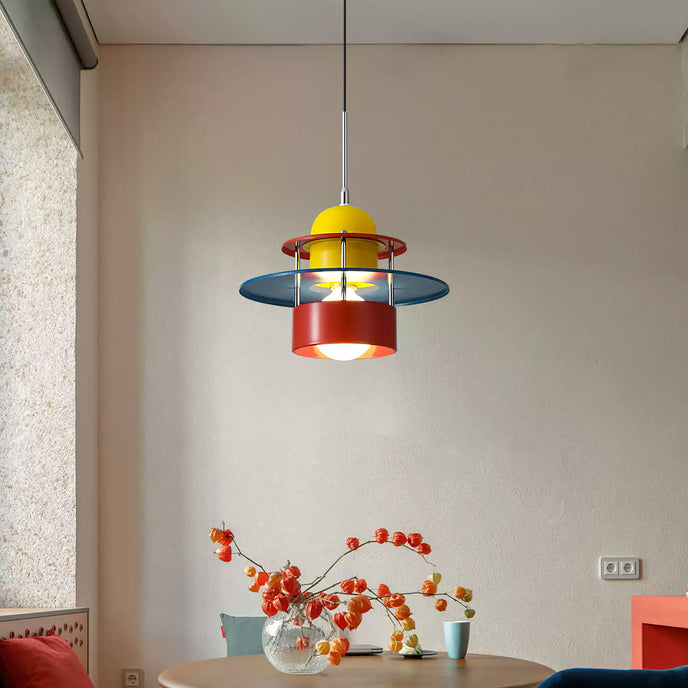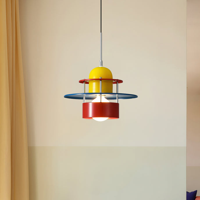 The Phillip Pendant Lamp by Mooijane embodies bold Bauhaus-inspired design with its striking geometric form and vibrant color palette of red, yellow, and blue. Simple yet impactful, it provides both illumination and visual intrigue. Perfect for restaurants, art spaces, or modern homes, this pendant lamp infuses any setting with vitality and a unique artistic presence.