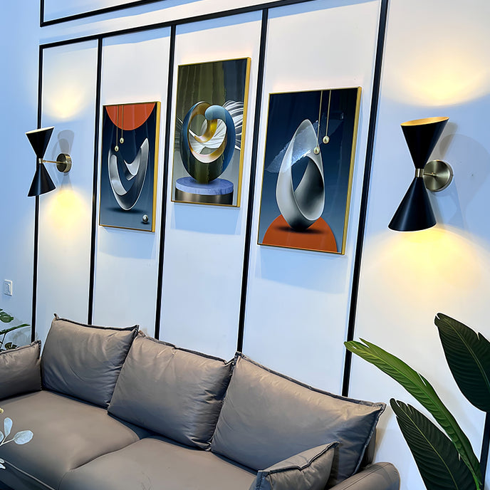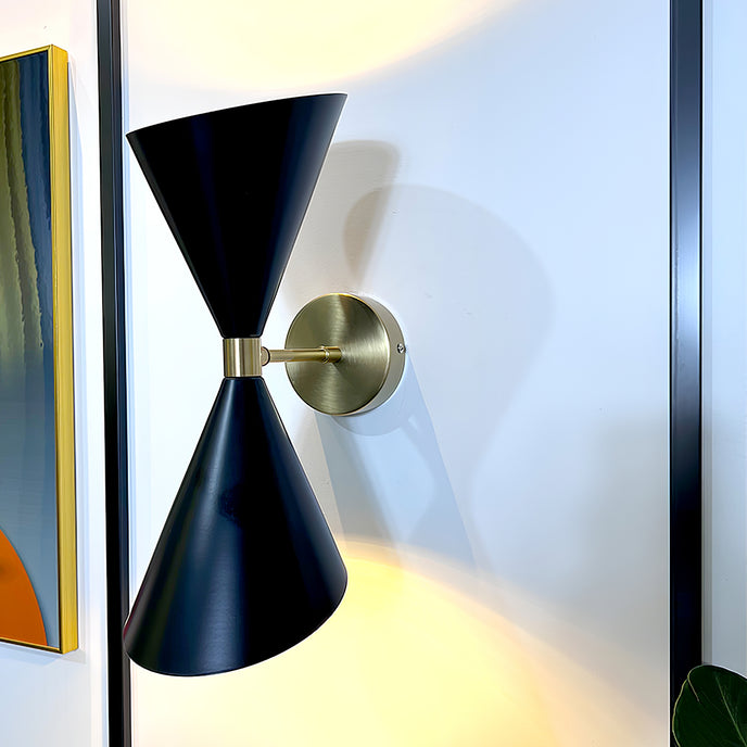 This mid-century modern wall sconce will be a wonderful lighting choice to complement the rest of your space decor. featuring the typical up-and-down design and two-tone finish, this mid-century modern wall sconce would be a stunning addition to a bedroom, living room, and hallway.
