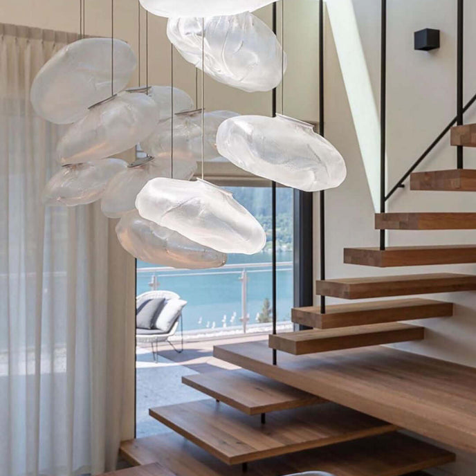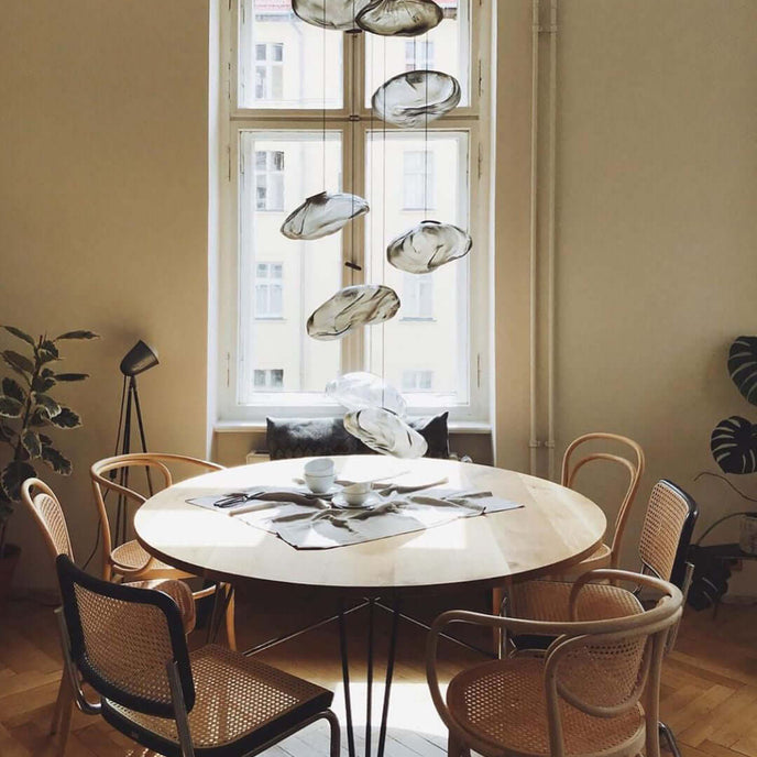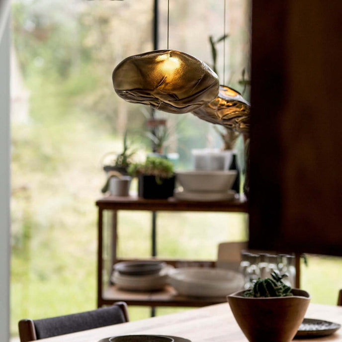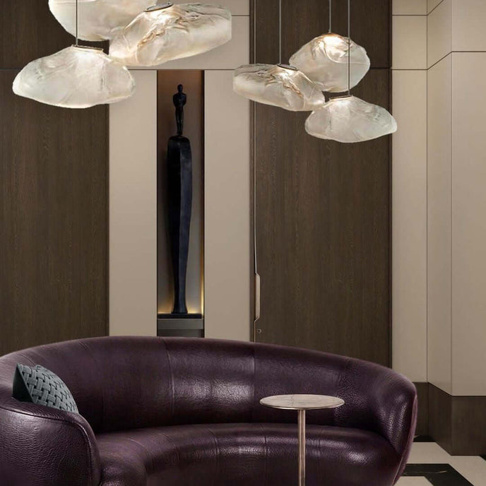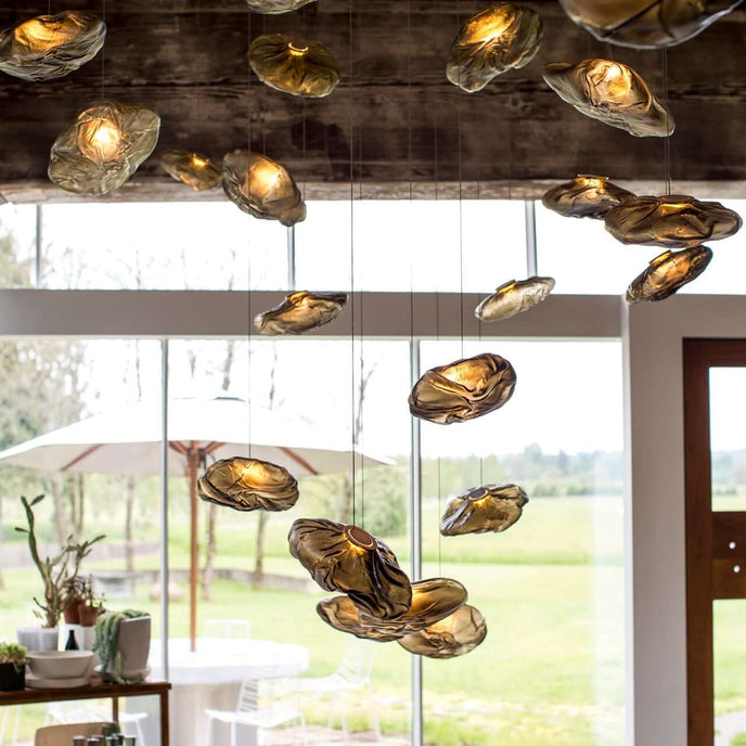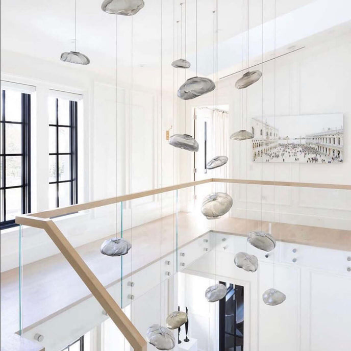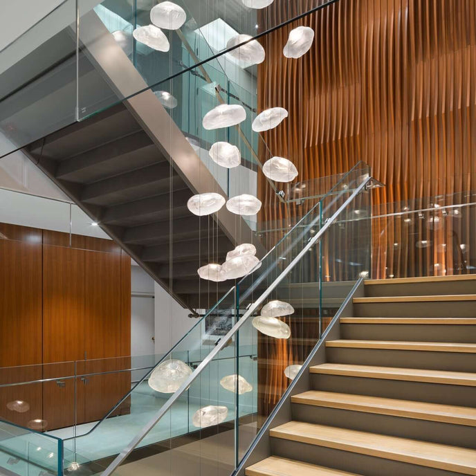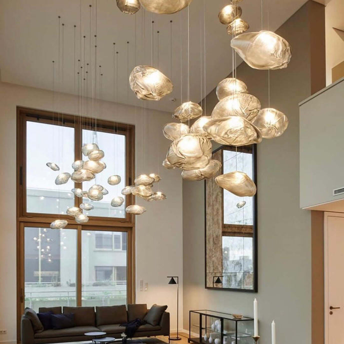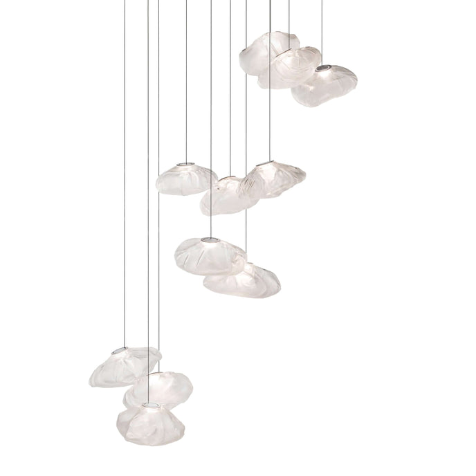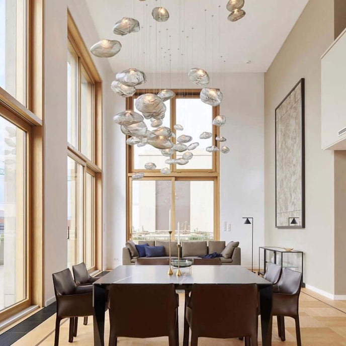 73.1 est une suspension basse tension conçue pour être composée dans des configurations atmosphériques. Chaque pendentif est soufflé à la bouche dans un récipient en tissu céramique plié et hautement résistant à la chaleur.