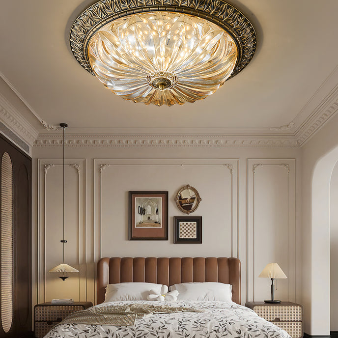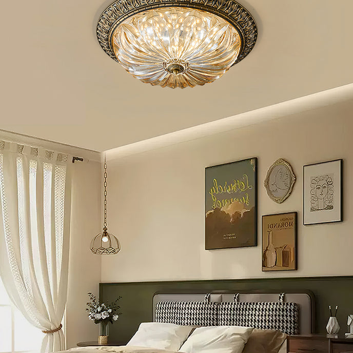 Add a touch of vintage charm to your interior with the Raveena Ceiling Lamp from Mooijane. Crafted with a stunning amber glass shade and an Antique Brass base, this fixture exudes a sense of traditional elegance and sophistication. Pair it with your transitional, eclectic, or vintage style decor for a timeless and elevated look.