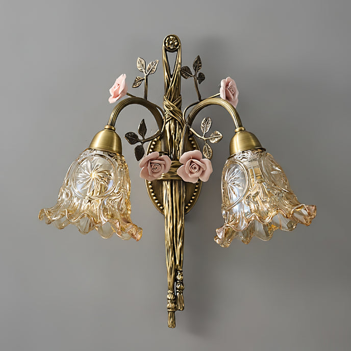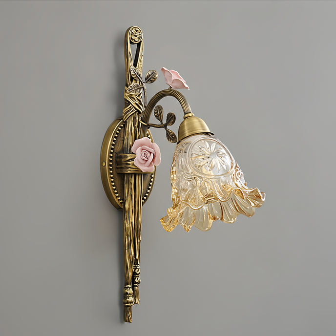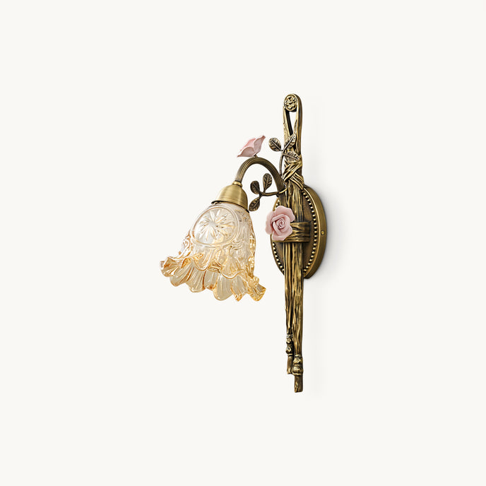 The Serivon Wall Lamp by Mooijane captures the grace of blooming florals through its blend of brass and glass craftsmanship. Sculpted brass branches with delicately detailed leaves and soft pink blossoms create a romantic, French-inspired charm. Embossed glass shades with petal-like edges gently diffuse the light, casting a warm, dreamy glow. Ideal for bedrooms, hallways, or living spaces, this wall lamp brings a touch of poetic elegance to any interior.