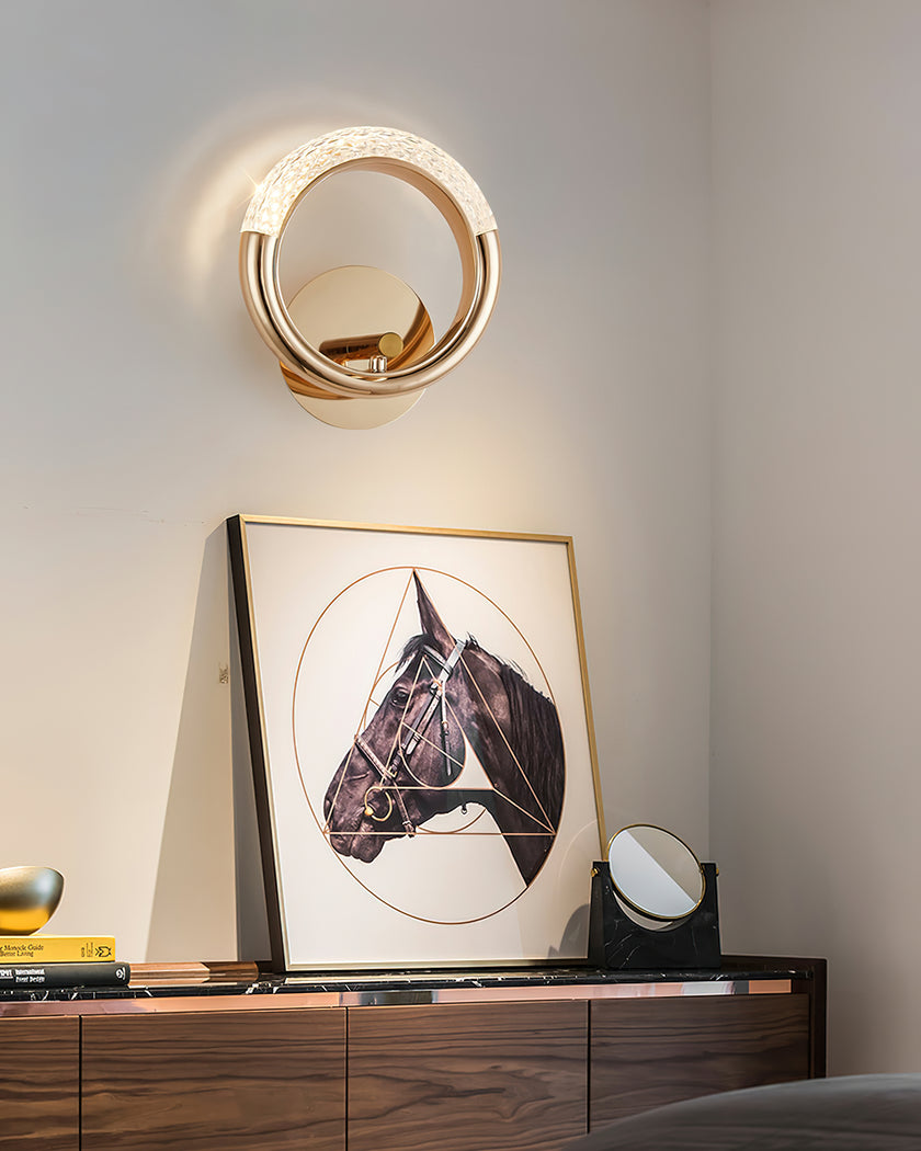 Introducing the Shiny Earrings Wall Lamp, a luxurious combination of hardware and acrylic that's perfect for creating a unique atmosphere in your home. Its adjustable angle and rotatable design allows you to experiment with different decorating angles and play with light and shadow to create an eye-catching effect. Laser-engraved with a unique diamond pattern, this lamp body shines and glimmers with an elegant, solid gold hue. Experience quality life with these stylish, creative earrings wall lamps.