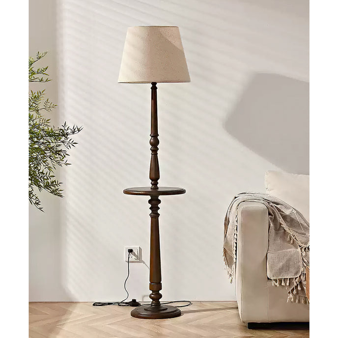 The Sophia Floor Lamp by Mooijane combines classic wood craftsmanship with soft fabric for a sophisticated, timeless design. The elegant wooden frame, featuring a built-in table, is paired with a soft beige fabric shade that emits a warm, inviting glow. Perfect for living rooms, bedrooms, or reading corners, this lamp seamlessly blends functionality with style, adding charm and character to any space.
