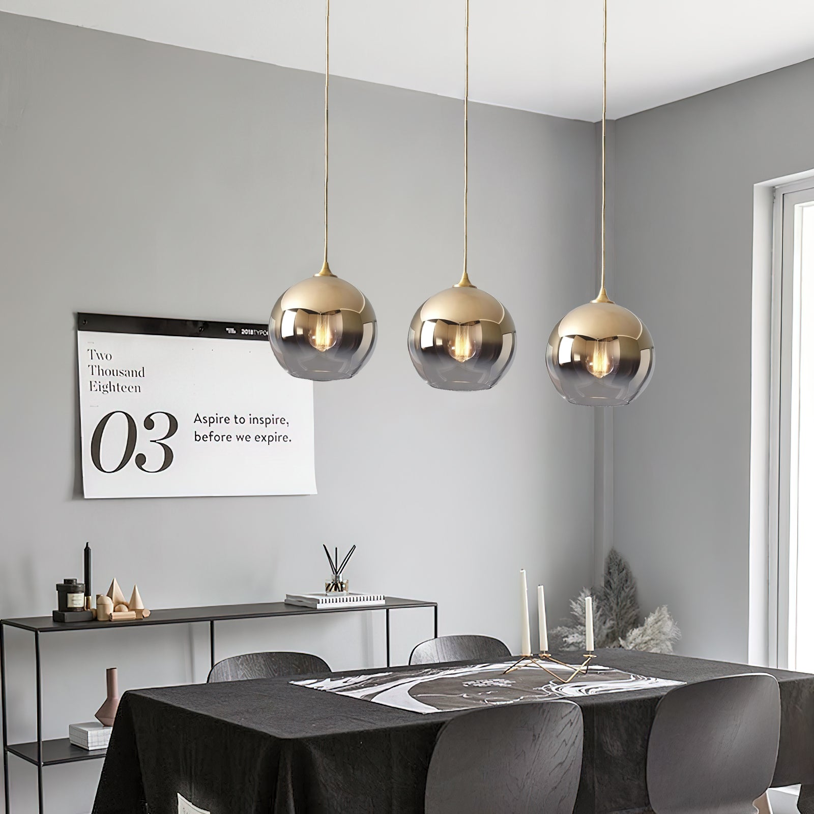 This spherical glass pendant light adds modern rustic style to any room. Made with a transparent glass shade and a gradient gold finish, it's perfect for dining rooms, kitchen islands, bedrooms, and living rooms. Durable and energy-efficient, it's sure to make a statement in your home.