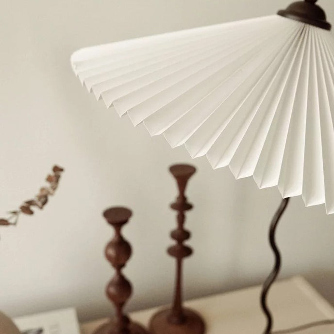 Si vous recherchez un complément décoratif idéal pour compléter n'importe quelle pièce de votre maison, apportant ainsi une touche moderne, avec du caractère et de la personnalité, la lampe de table plissée parapluie japonais de style origami en laiton doré de style nordique avec abat-jour blanc en tissu et plastique est un choix parfait. Sa base a un design Curvy original et élégant illuminant votre pièce de manière agréable et confortable. La lampe de table Origami Squiggle est parfaite pour les salons, les couloirs et les chambres dans des styles tels que éclectique ou vintage. Belle lampe de table plissée de style nordique moderne/rétro avec une tige ondulée incurvée.