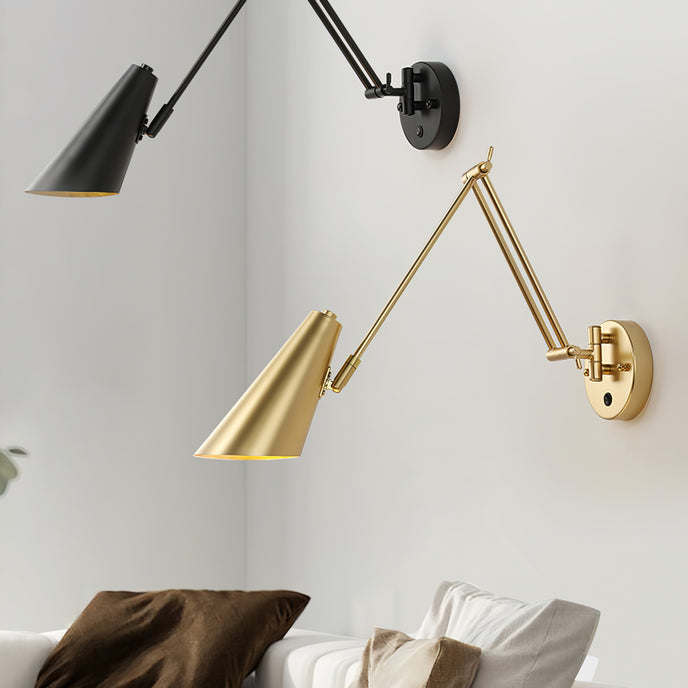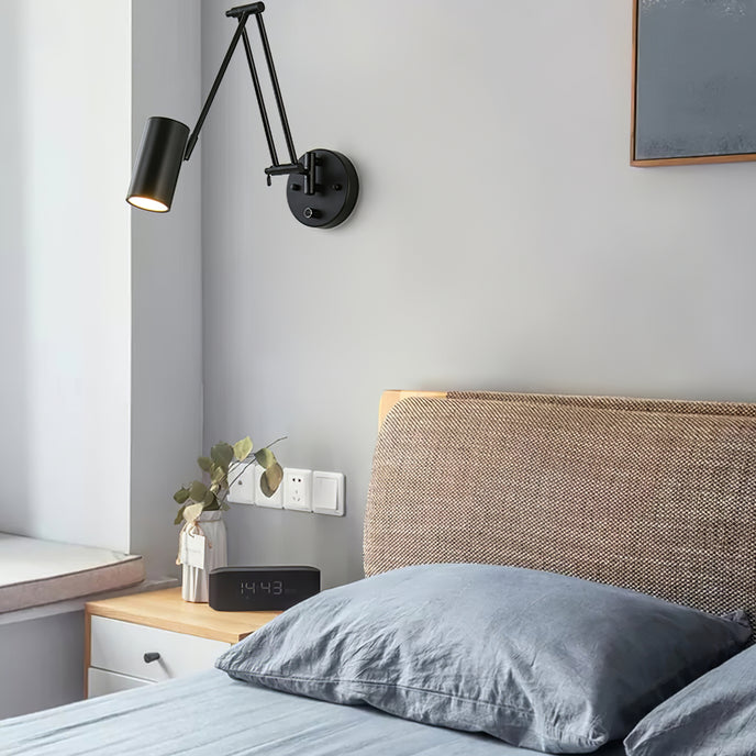 Applique murale en fer, design moderne et élégant, ce n'est pas seulement un éclairage mural, mais aussi une décoration idéale. Cette applique murale enfichable pivotante peut ajuster sa distance par rapport au mur et peut être tournée pour faire face à n'importe quelle direction pour s'adapter aux exigences d'éclairage.