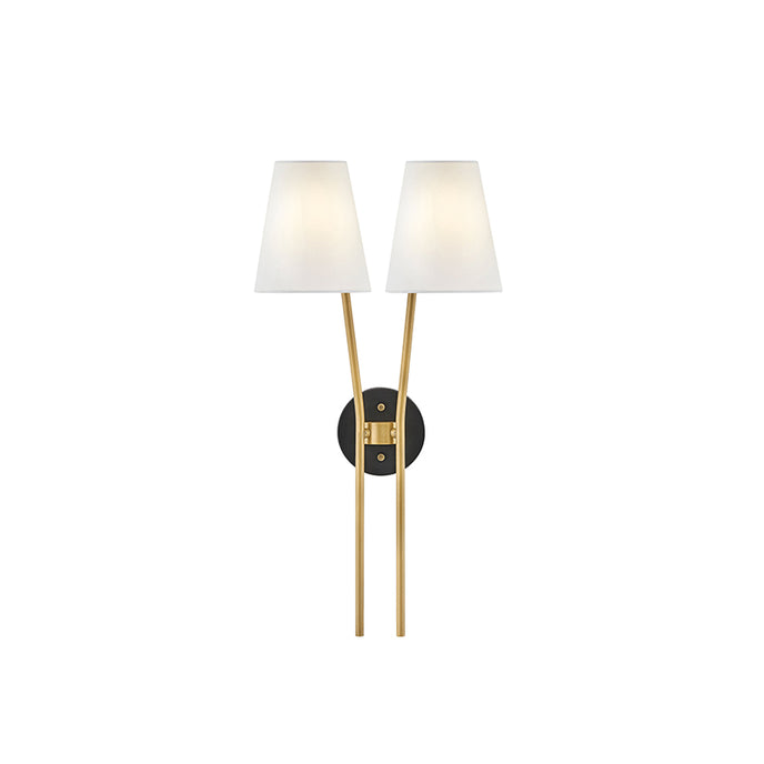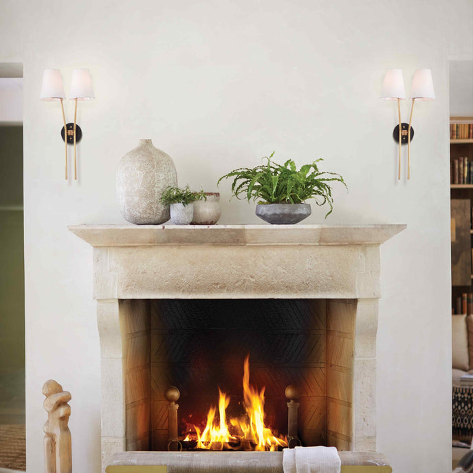 The Teague Wall Lamp by Mooijane blends timeless tradition with refined detail. Its gracefully curved arms in contrasting finishes support tapered offset shades, creating a balanced and classic silhouette. Offered in a Heritage Brass with Black finish, it adds enduring sophistication to any interior.