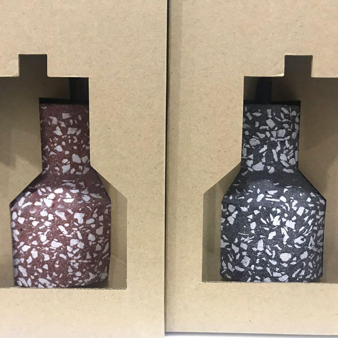 Ce matériau habituellement réservé à un usage de construction, trouve ici une certaine noblesse. Ce sont les motifs créés par les grains de cette matière une fois coulée et démoulée qui donnent aux créations Our leur originalité.