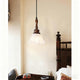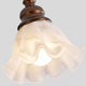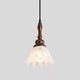 The Tessira Pendant Lamp from Mooijane features a sleek metal stem supporting an elegant ruffled glass shade. Frosted glass softly diffuses light, creating a warm, inviting glow, while a wooden base adds natural contrast. Subtle curves enhance its vintage charm, making it perfect for kitchens, dining rooms, or cozy corners—blending refined aesthetics with functional illumination.