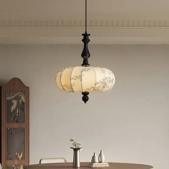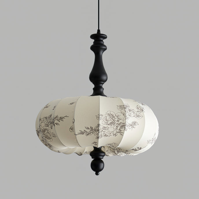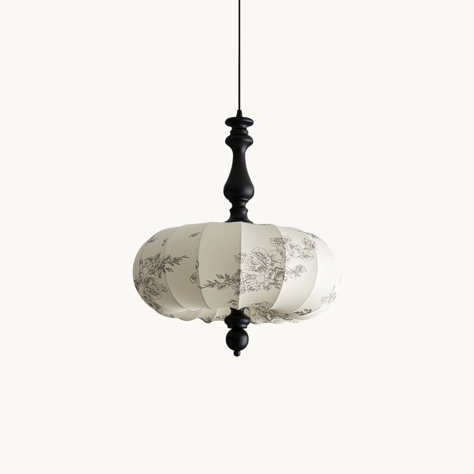 The Velina Pendant Lamp from Mooijane blends traditional and vintage elements with modern elegance. A warm wooden stem complements a fabric shade adorned with delicate floral patterns, softly diffusing light. Scalloped edges and refined wooden accents create a playful yet sophisticated design, ideal for dining areas, living rooms, or bedrooms—bringing both charm and functional illumination to your space.