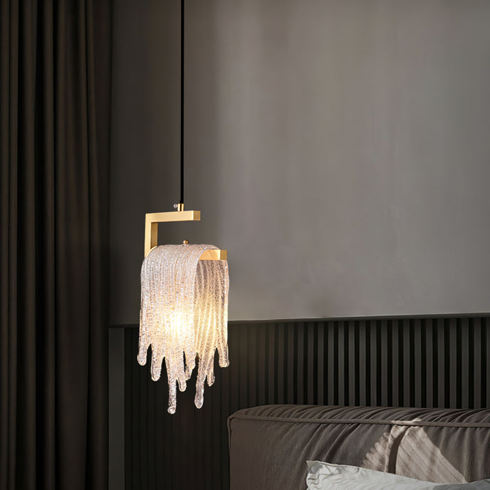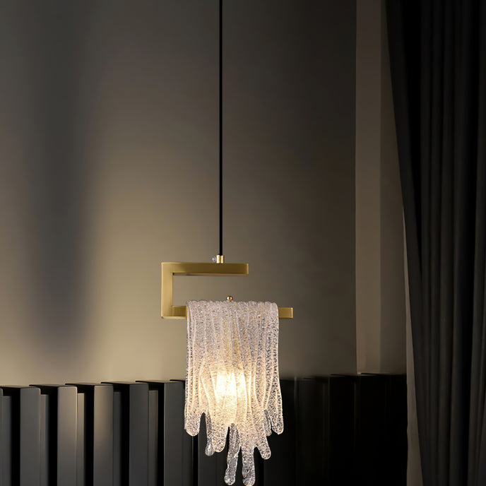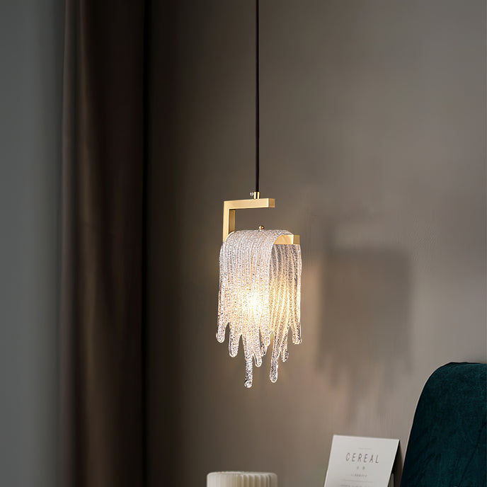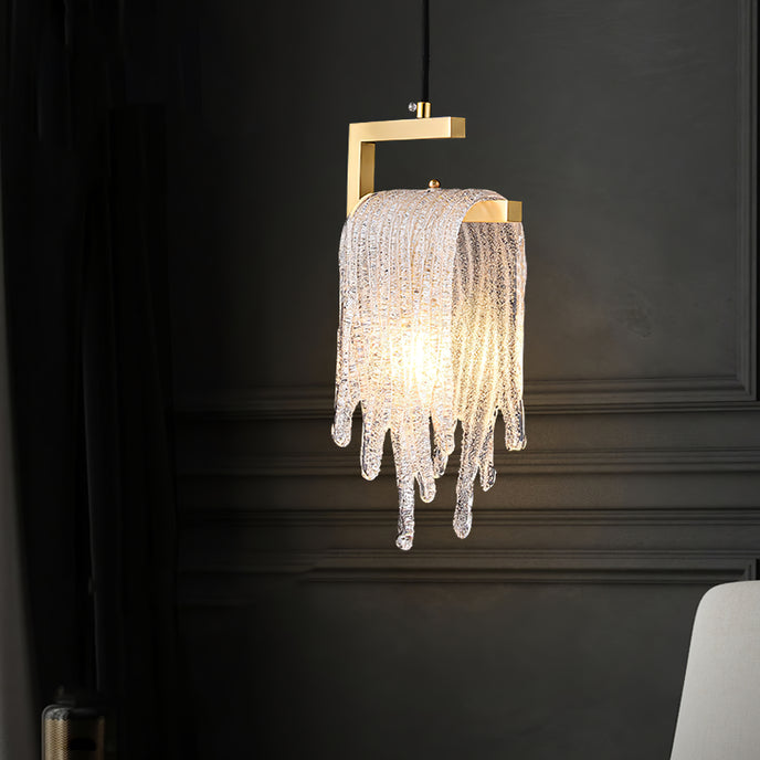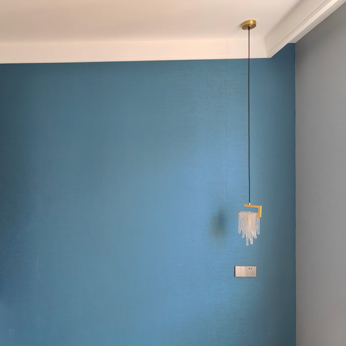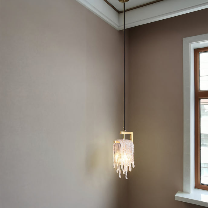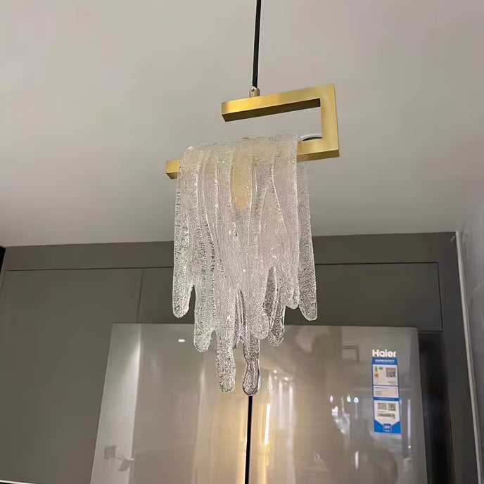 Un lustre à pampilles en verre avec une lumière vive et douce, adapté à plusieurs scènes, telles que des restaurants, des cuisines, etc.