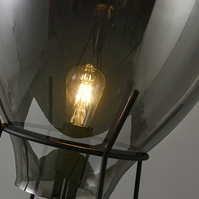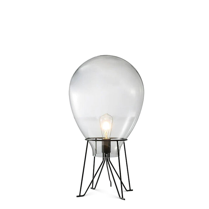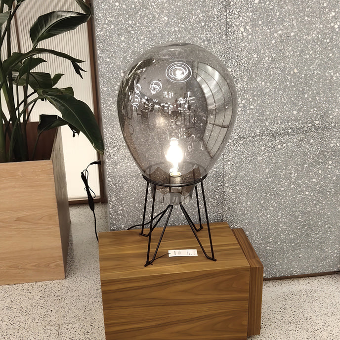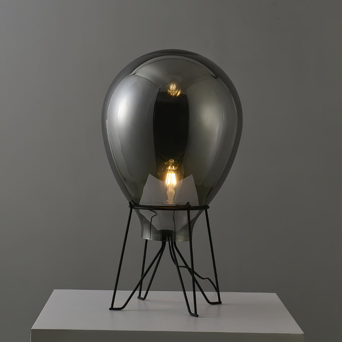 De Air Tafellamp lijkt op grillige wijze op een heteluchtballon; de oversized glazen kap zit bovenop een stevig stalen frame. Het getinte glas zorgt voor de perfecte hoeveelheid diffusie om de enkele lamp in het midden van de armatuur te verzachten.