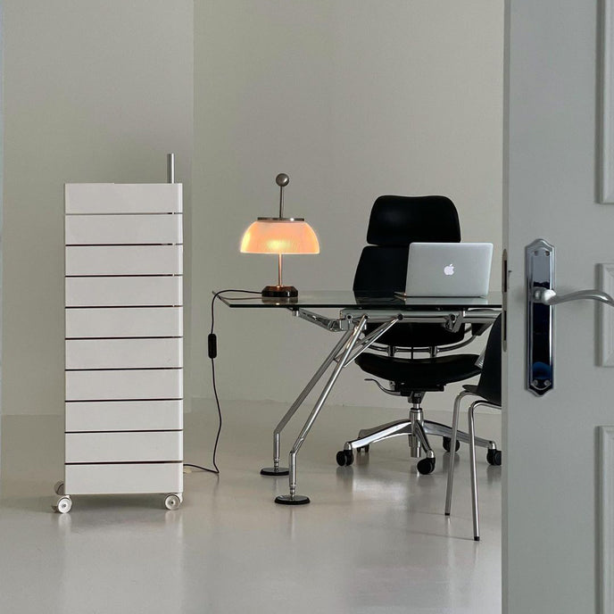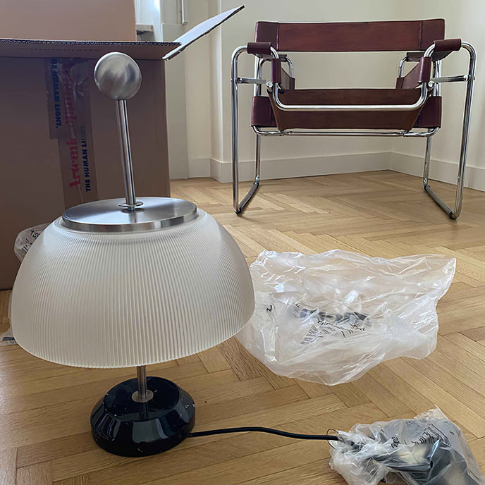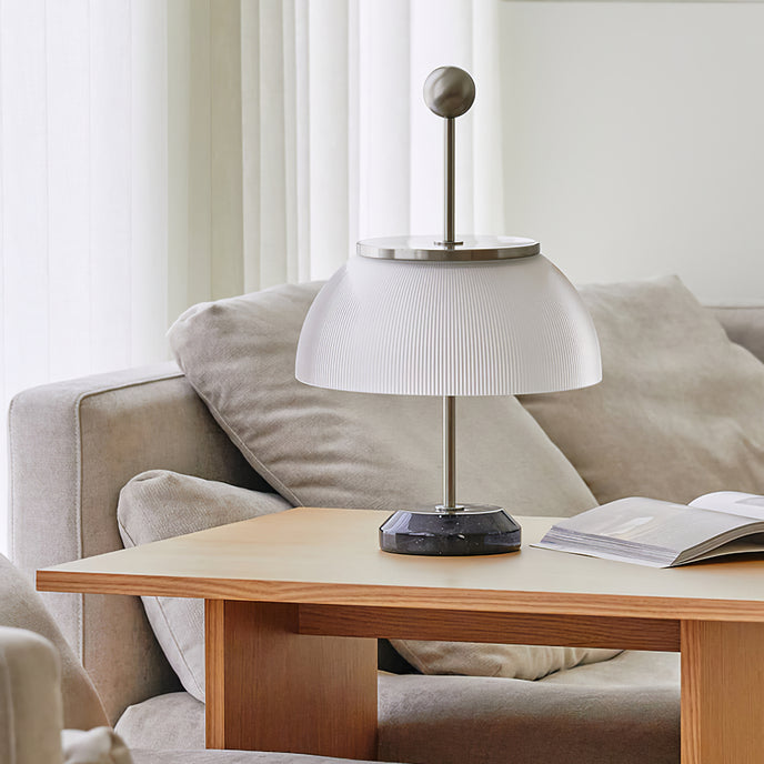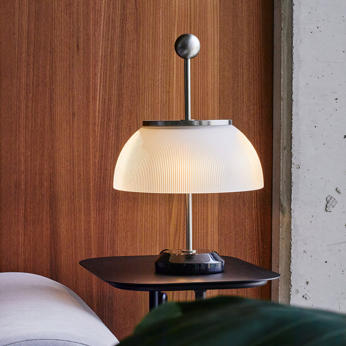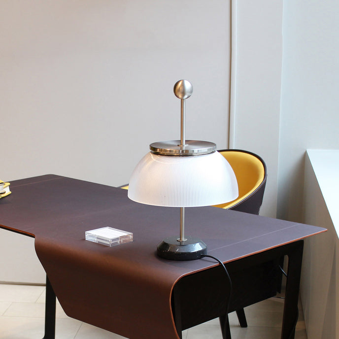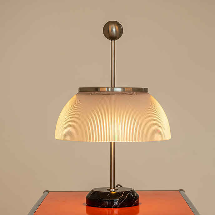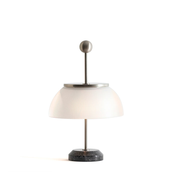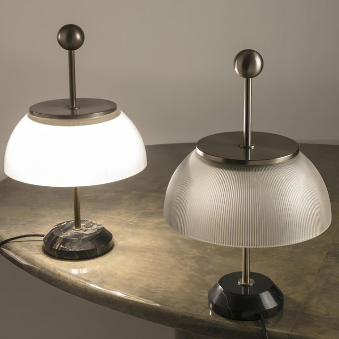 De Alfa tafellamp is gemaakt met ruwe materialen zoals kristalglas, nikkel, marmer en metaal. Het kristalglas van de lamp wordt gebruikt om de kap van de lamp te creëren, het marmer wordt gebruikt bij het maken van de voet van de lamp, aangezien de lamp is gemaakt om een met de hand afgestelde metalen kolom te hebben. De basisafwerking is in zwarte kleur, het glas van de lamp is kristal terwijl het lichaam is afgewerkt in ondoorzichtig nikkel geplooid.