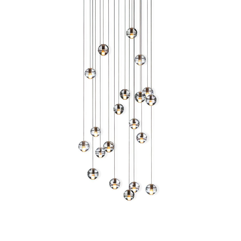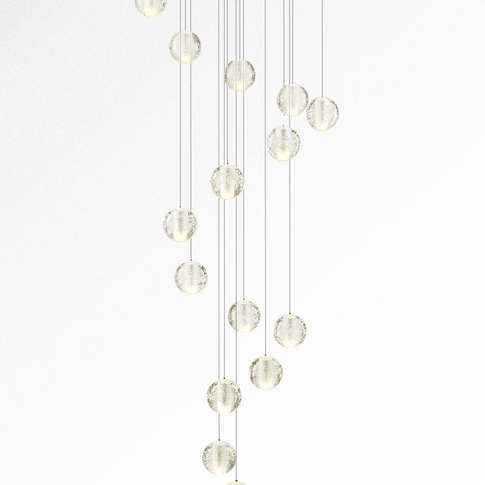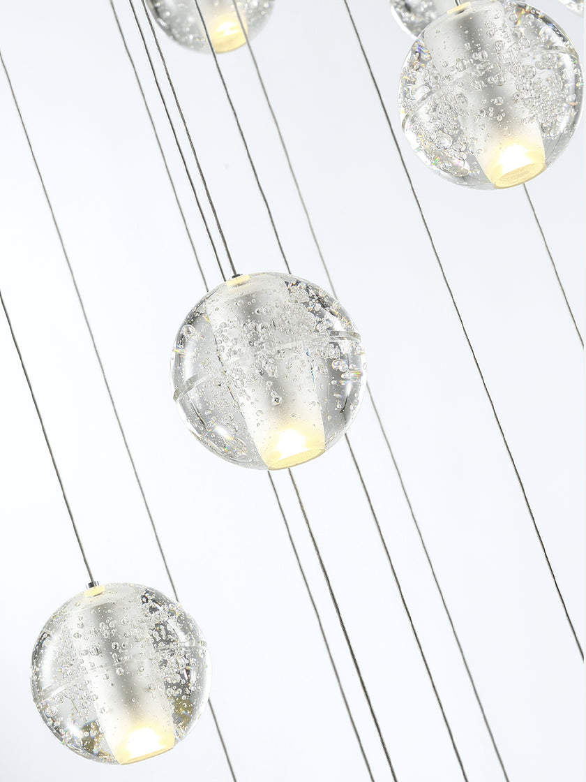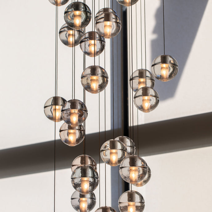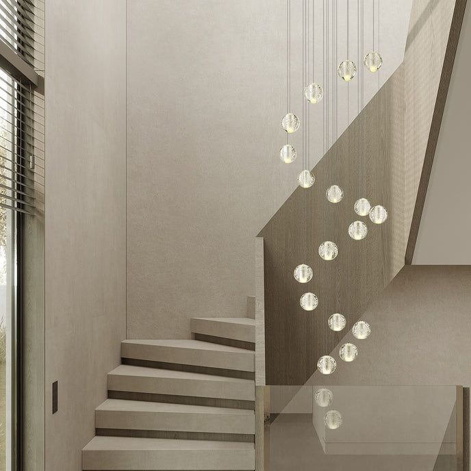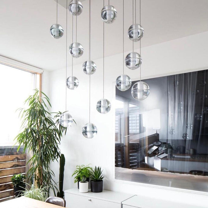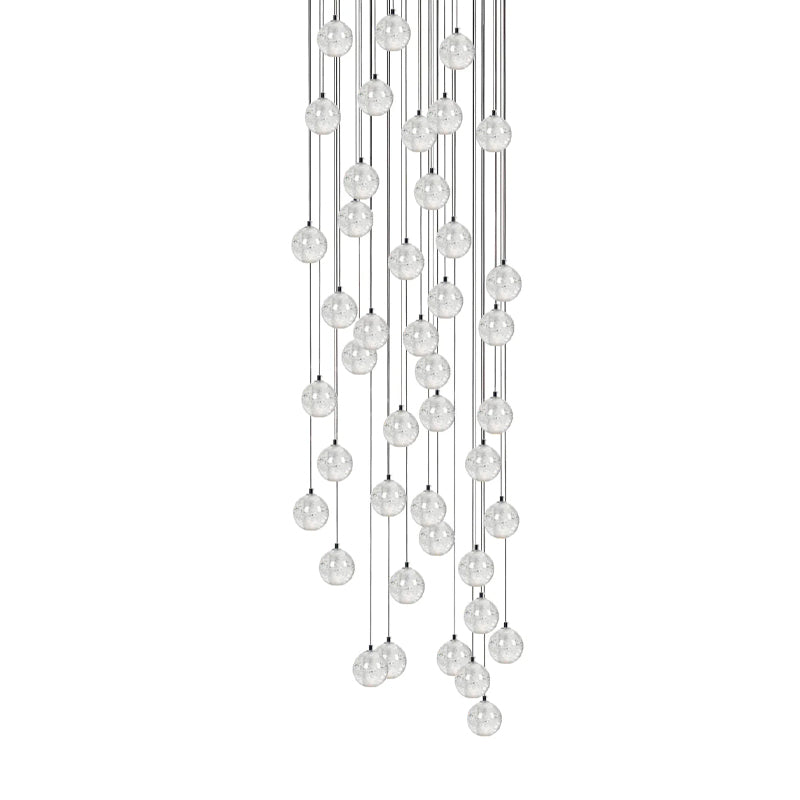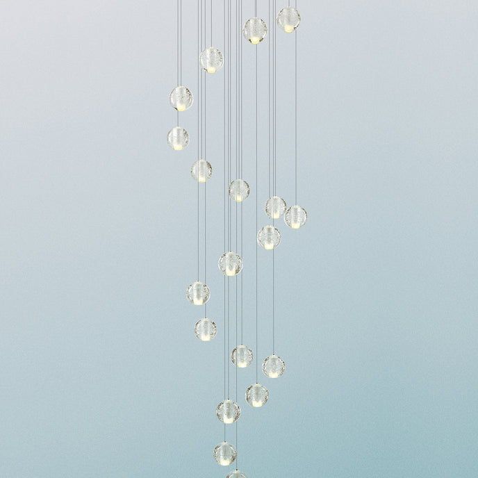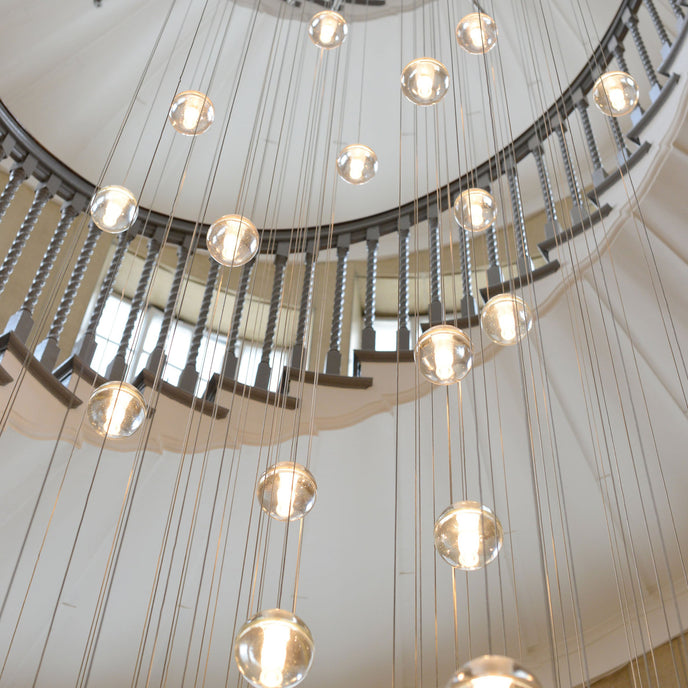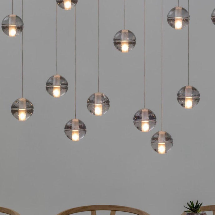 De Ball Crystal Pendant Light interageert met de imperfecties van het glas om een rijke halo van licht te creëren. Visueel vrij subtiel, winnen ze enorm aan kracht wanneer ze worden geclusterd in willekeurige formaties langs horizontale en verticale toepassingen. Populaire residentiële en commerciële toepassingen zijn onder meer keukens, restaurants, slaapkamers en kasten, gangen, patio's, trapverlichting, foyers en lobby's en andere grote binnen- en buitenconfiguraties in privé- en openbare ruimtes.