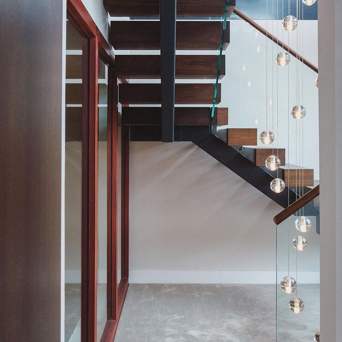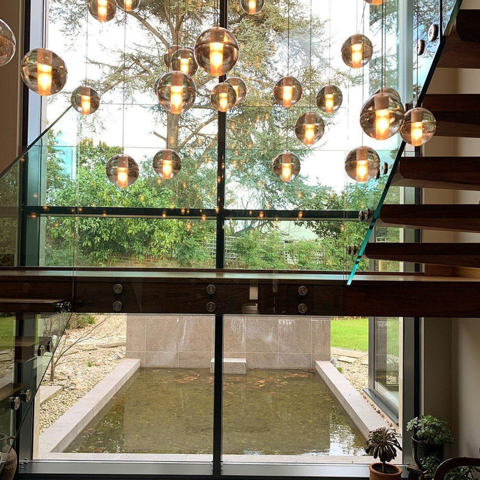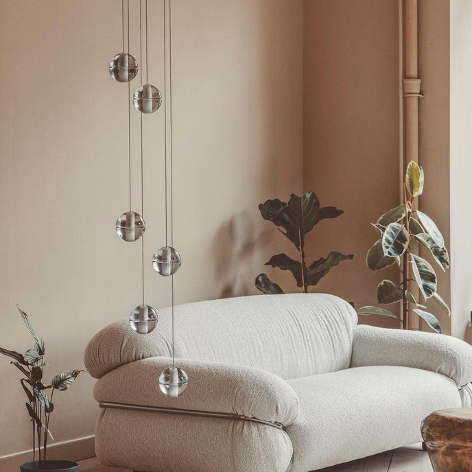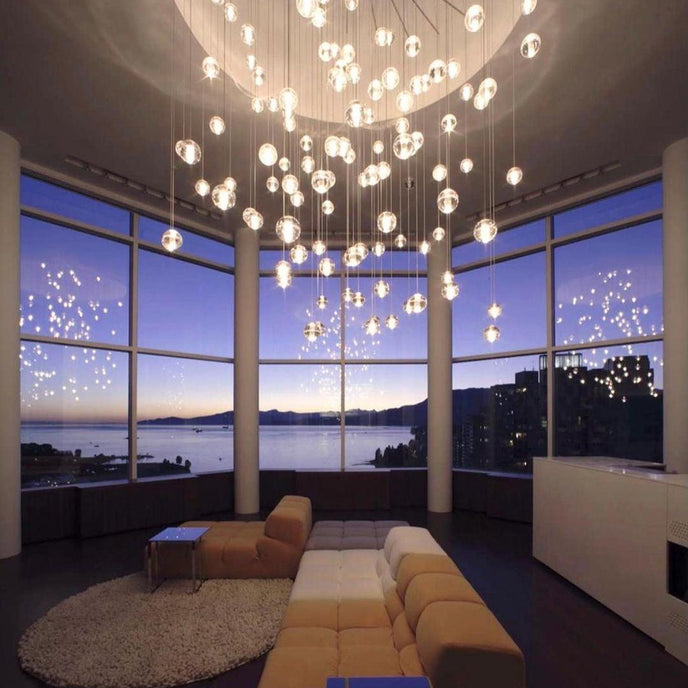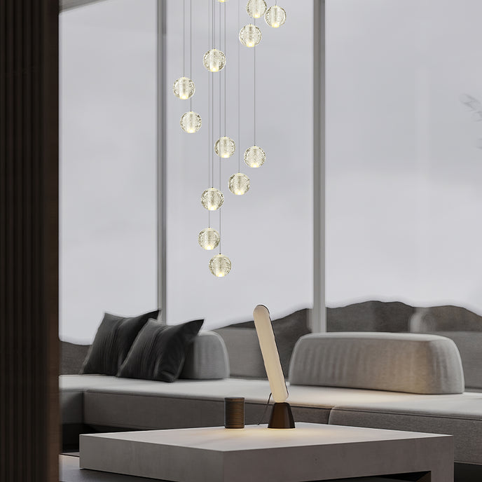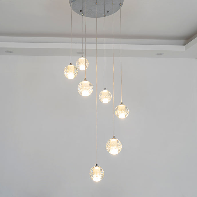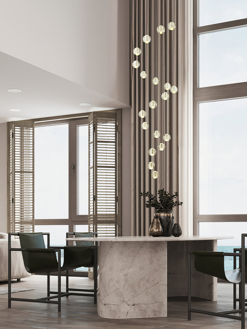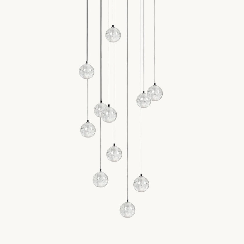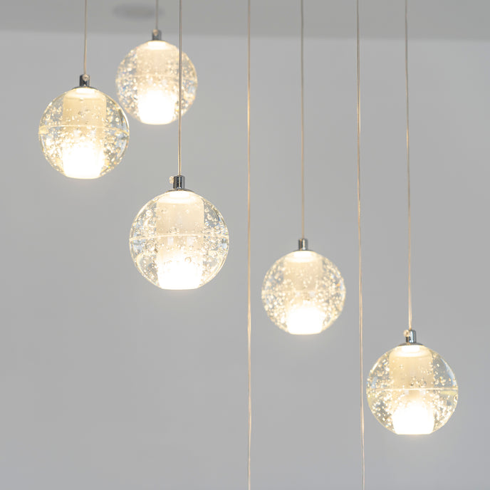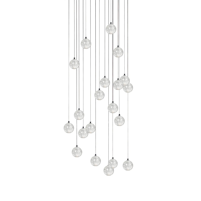De Ball Crystal Pendant Light interageert met de imperfecties van het glas om een rijke halo van licht te creëren. Visueel vrij subtiel, winnen ze enorm aan kracht wanneer ze worden geclusterd in willekeurige formaties langs horizontale en verticale toepassingen. Populaire residentiële en commerciële toepassingen zijn onder meer keukens, restaurants, slaapkamers en kasten, gangen, patio's, trapverlichting, foyers en lobby's en andere grote binnen- en buitenconfiguraties in privé- en openbare ruimtes.