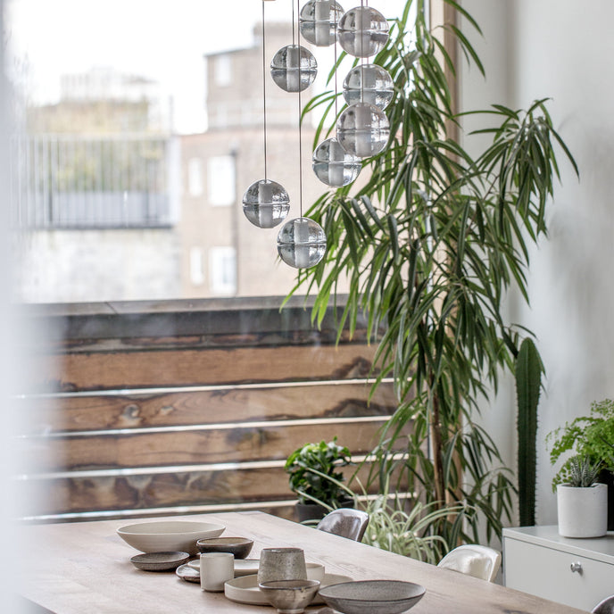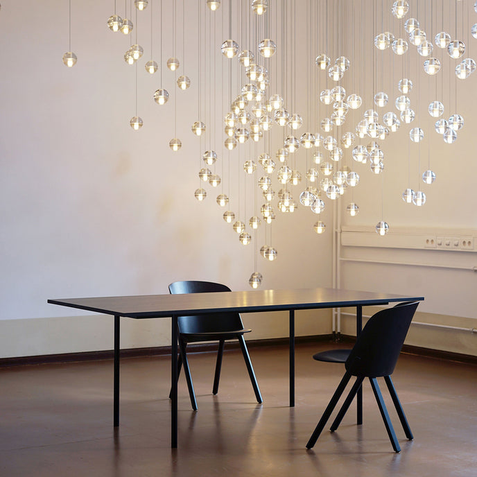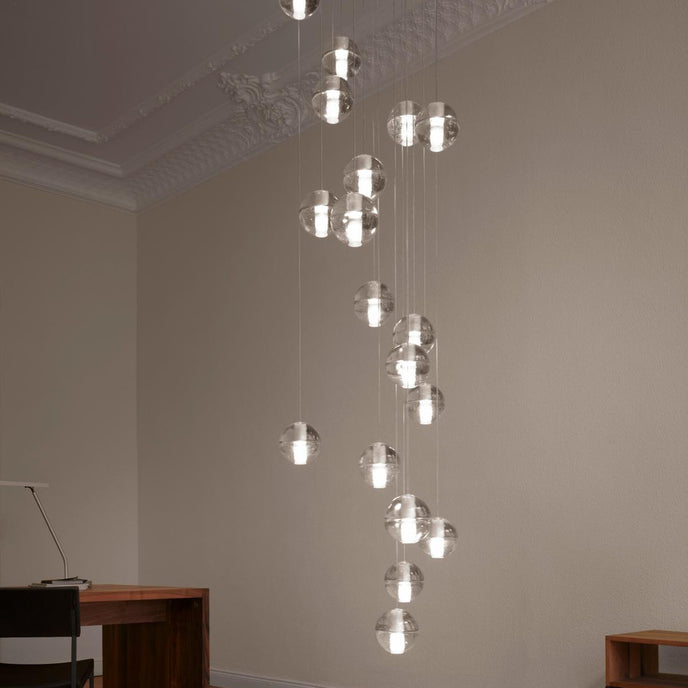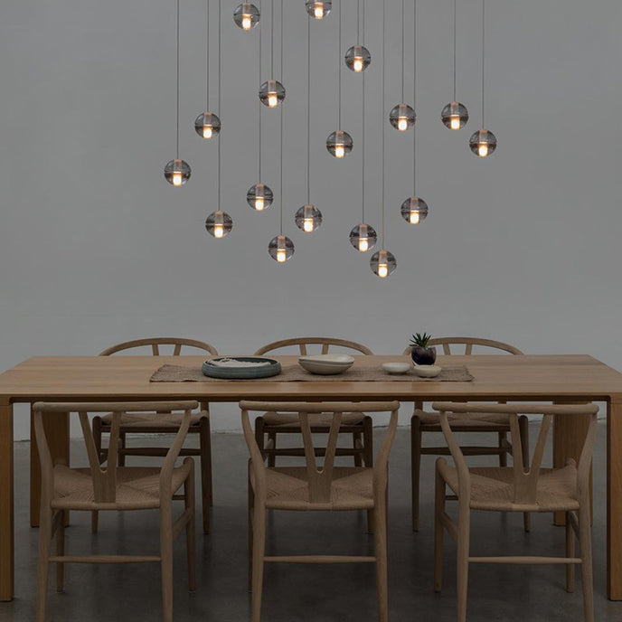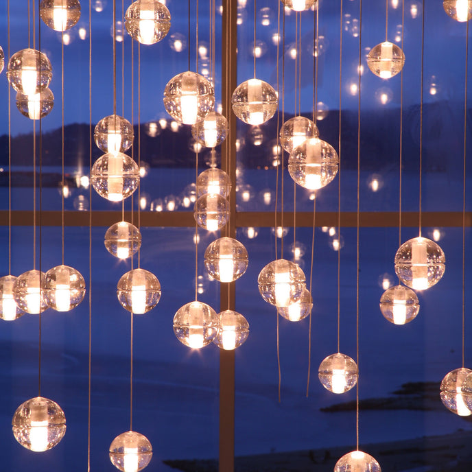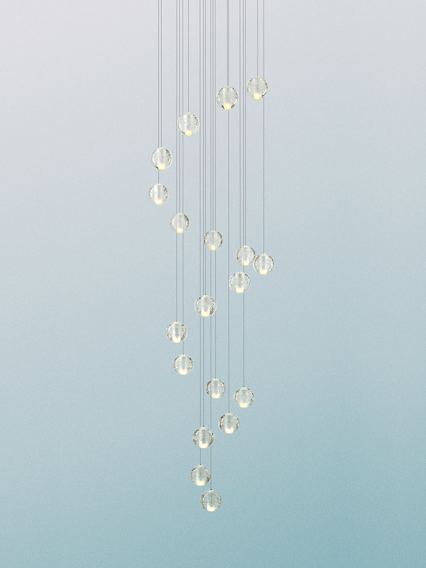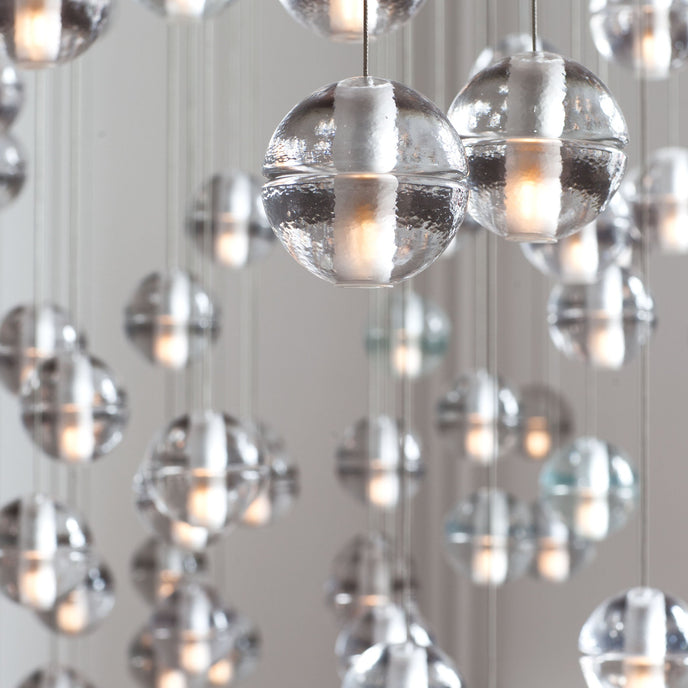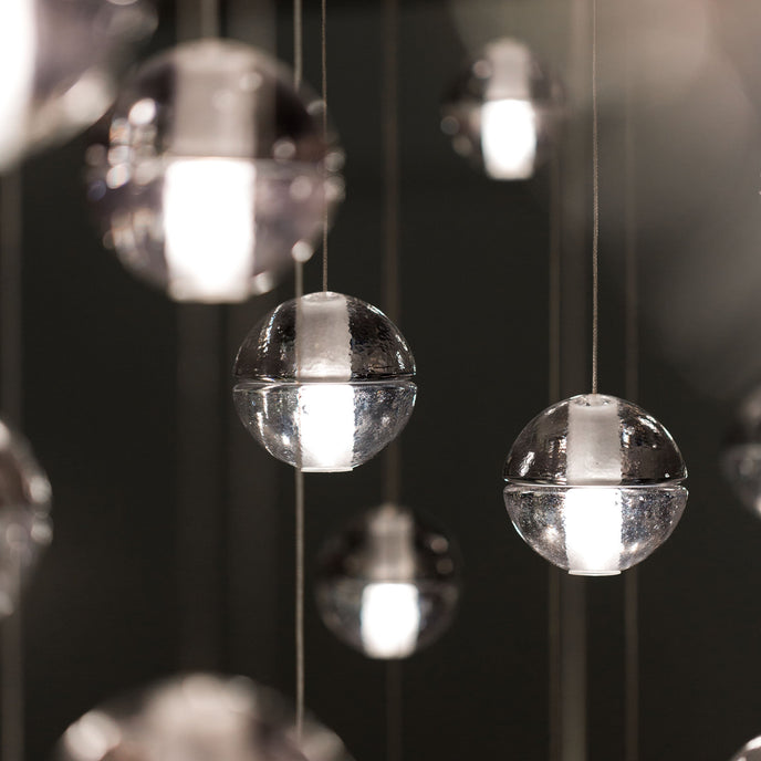 De Ball Crystal Hanglamp is een gloeiende bol van handgegoten glas, waarbij elk onderscheidend stuk een uniek licht creëert. Een gematteerde, cilindrische leegte herbergt ofwel een laagspannings xenon/halogeen- of LED-licht, dat de bubbels en onvolkomenheden van elke gelede bol verlicht. Individueel zijn de hangers visueel subtiel, maar krijgen ze een indrukwekkende atmosferische kwaliteit wanneer ze worden geclusterd. de Ball Crystal Pendant Light werd meteen een klassieker en is ideaal voor zowel woningen als commerciële eigendommen.