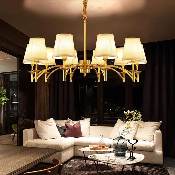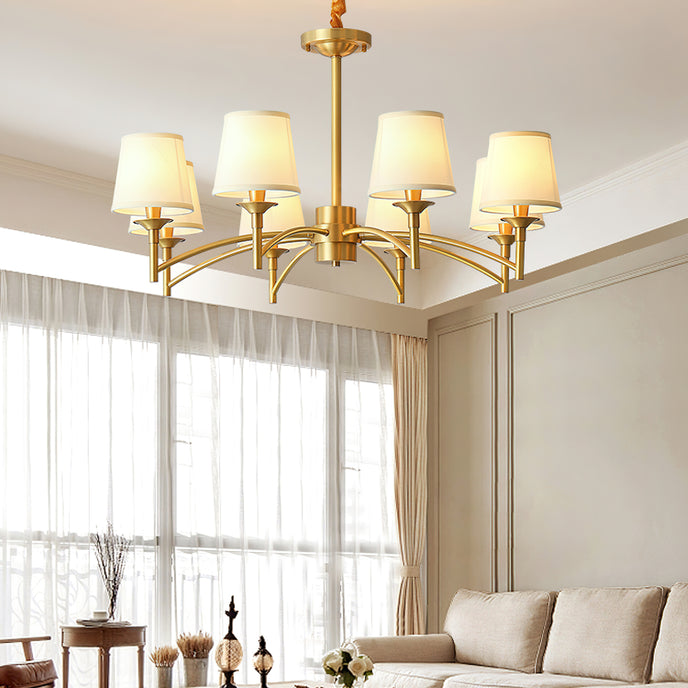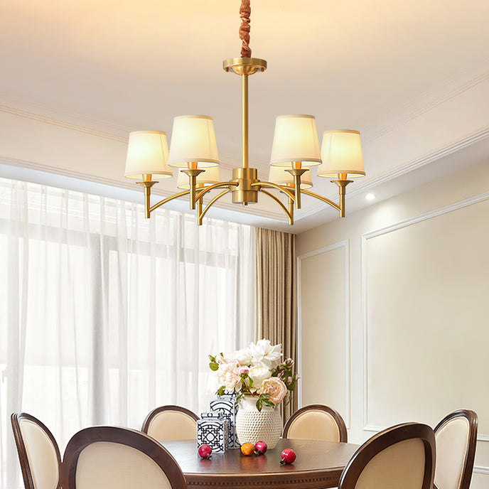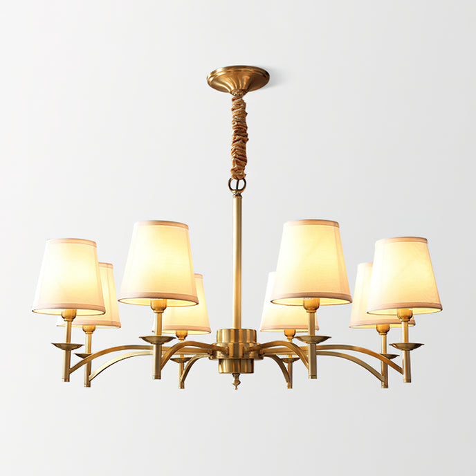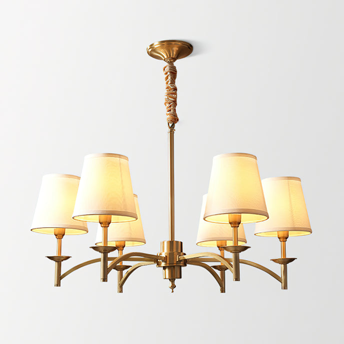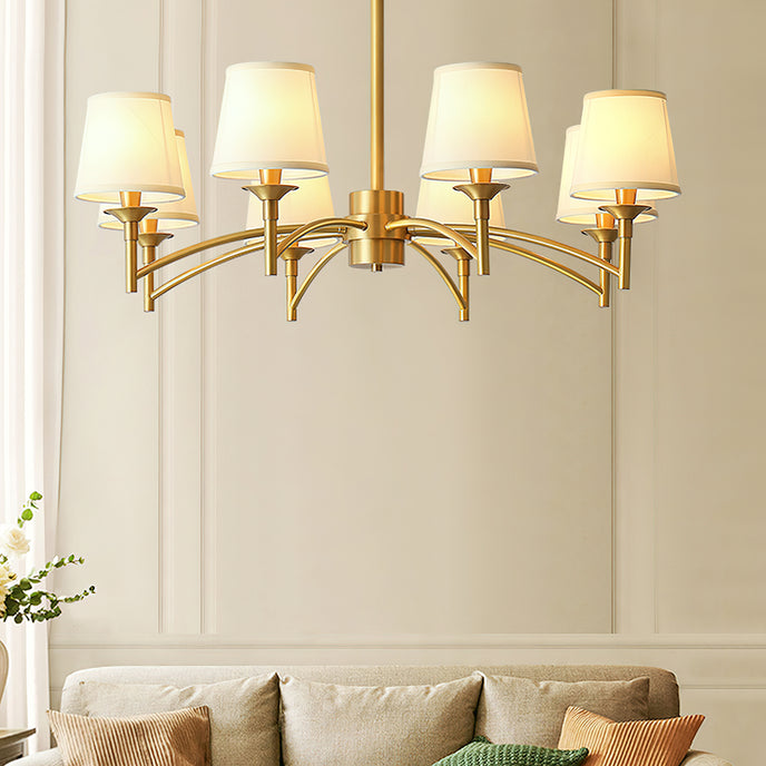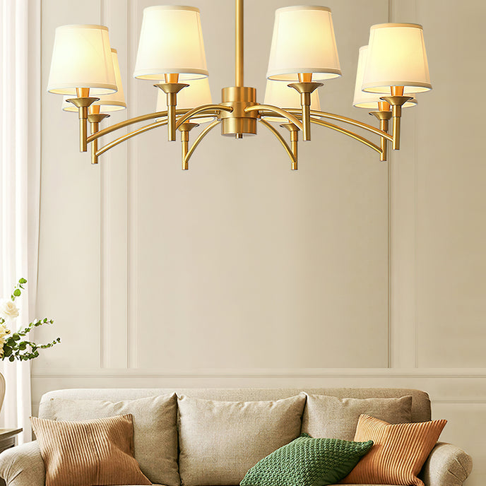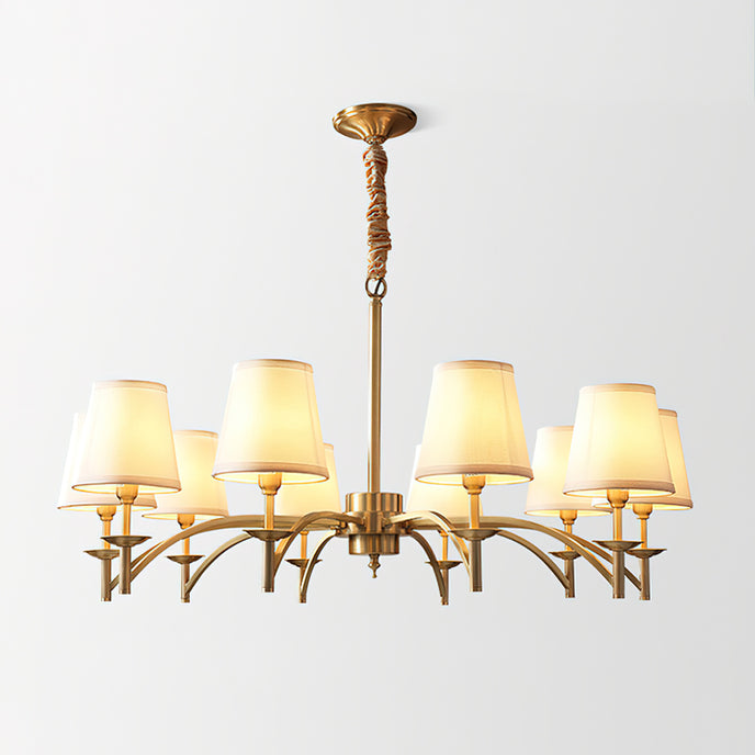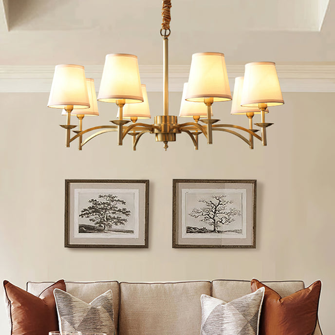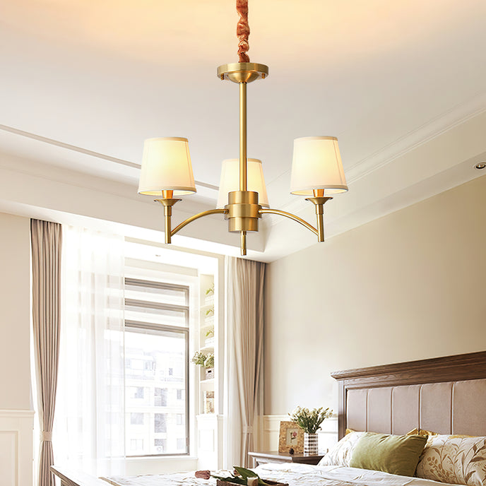 Elevate the ambiance of your space with this Devona Traditional Pendant Lamp from Mooijane. This beautiful piece features a brass frame with an antique bronze finish supporting curved arms and single-tier light. The white fabric drum shade and torch-style base add a touch of classic elegance.