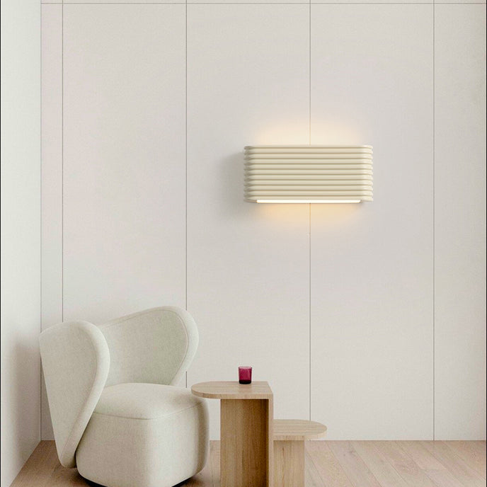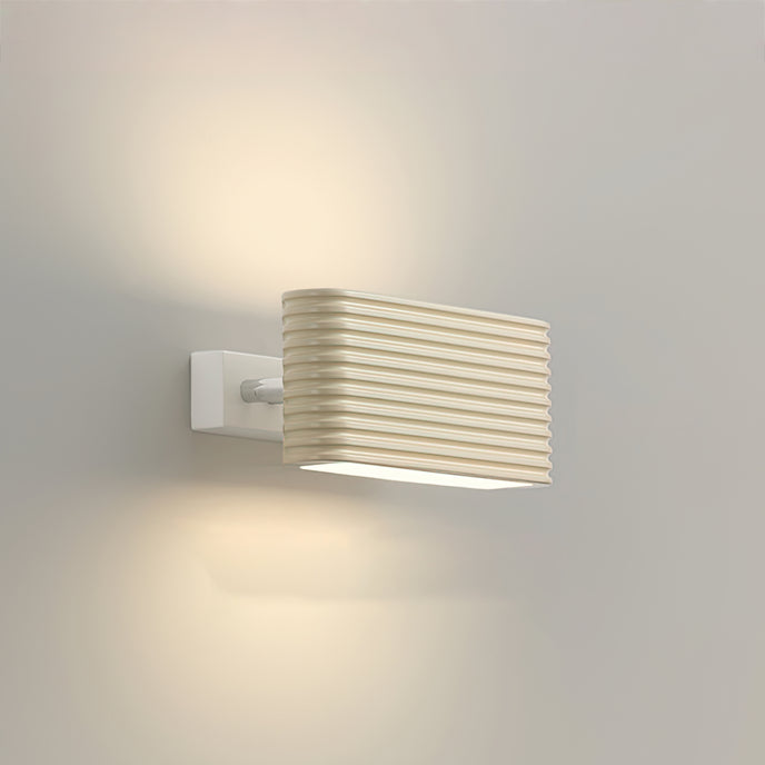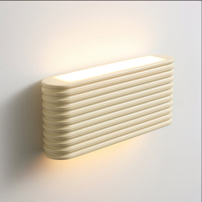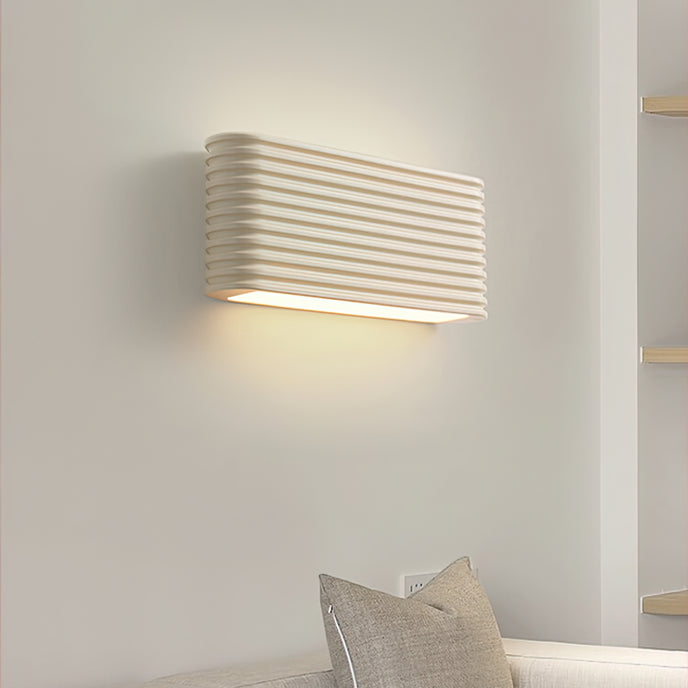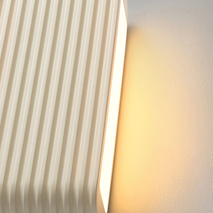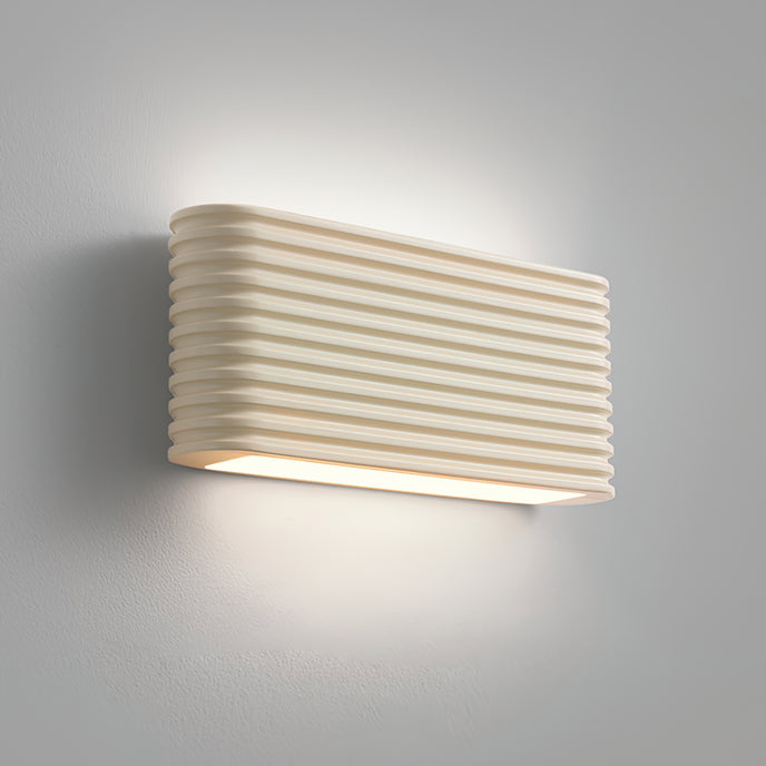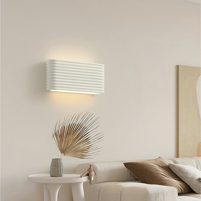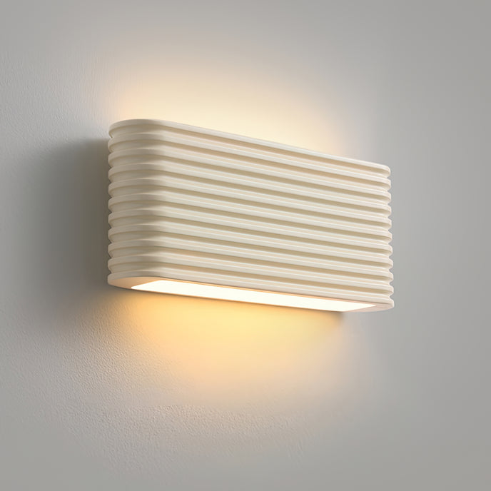 Dress up your home with this stylish statement. The sconce slots elegantly over your wall in a rectangular construction that feels like it’s part of the home’s architecture. Like the folds of a dress, its surface draws the eye with fine striations. This elegant pattern is easy to appreciate both day and night. LED light complements the stylish design as it exits through the structure’s top and bottom openings. Creating an inviting ambiance, the light glazes the wall with a soft, fanned-out quality.
