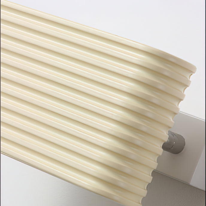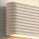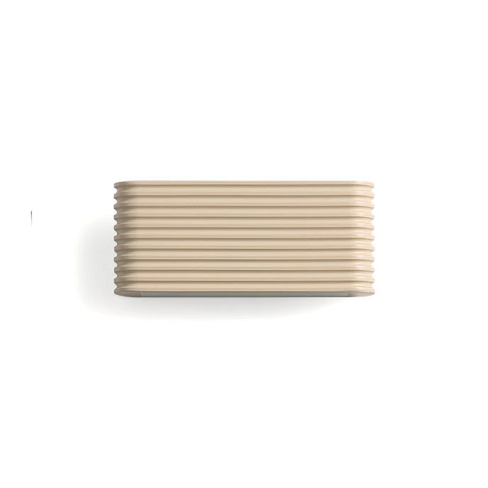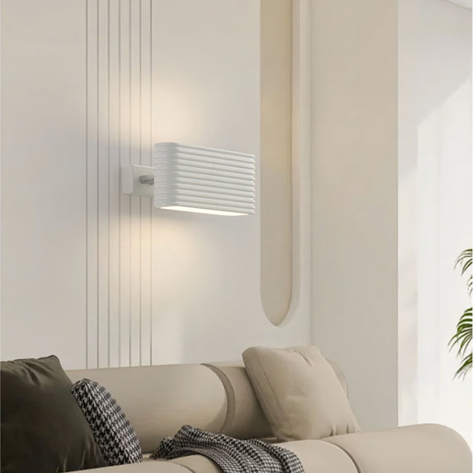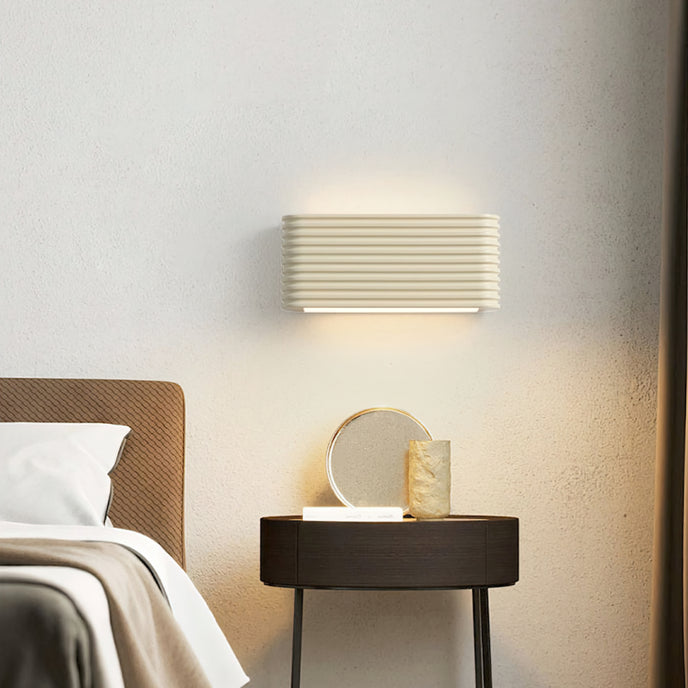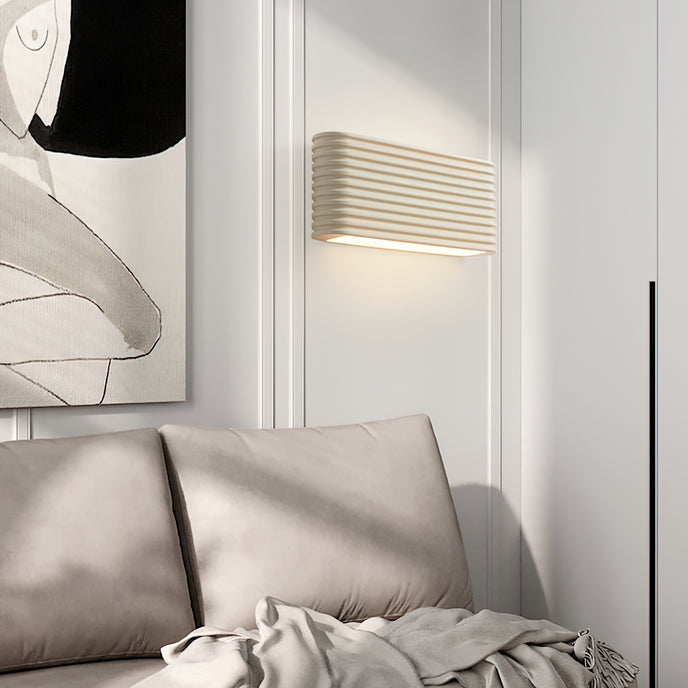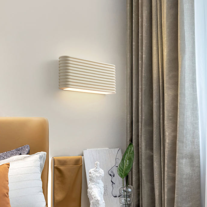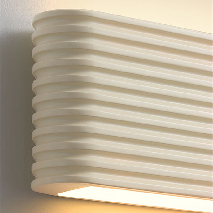 Dress up your home with this stylish statement. The sconce slots elegantly over your wall in a rectangular construction that feels like it’s part of the home’s architecture. Like the folds of a dress, its surface draws the eye with fine striations. This elegant pattern is easy to appreciate both day and night. LED light complements the stylish design as it exits through the structure’s top and bottom openings. Creating an inviting ambiance, the light glazes the wall with a soft, fanned-out quality.