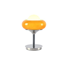 Vanwege het prachtige space-age design en de geweldige vintage staat is de lamp overal de perfecte bruikbare decoratie. De kap is gemaakt van een chromen blad, lichtbruin plexiglas en een melkwitte glazen bol. Geschikt voor alle woonruimtes en zeer decoratief.