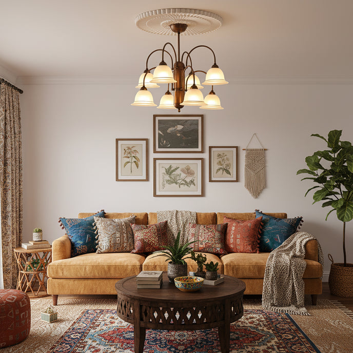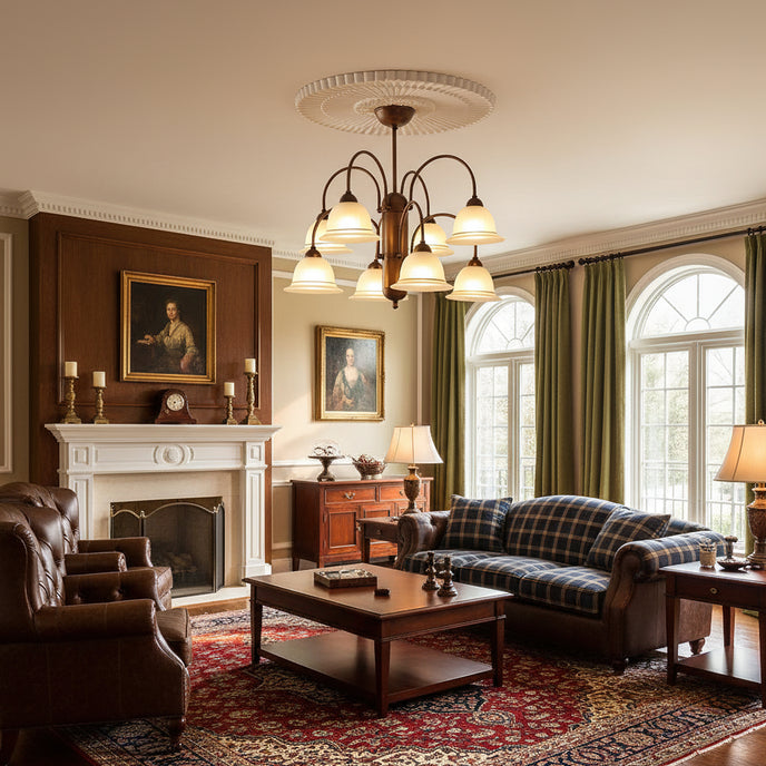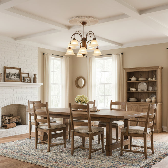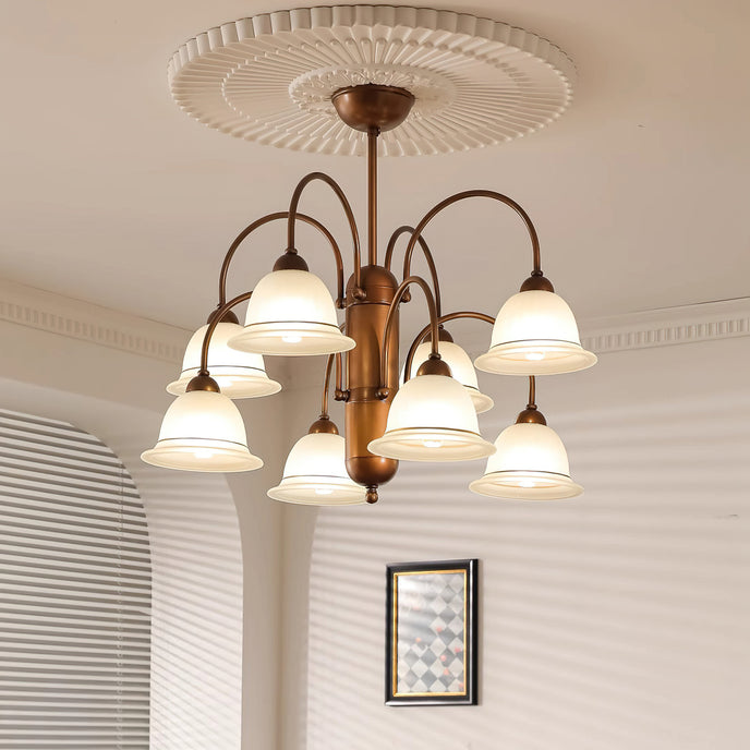 The Mcdavid Chandelier by Mooijane combines timeless elegance with warm, diffused lighting. Featuring gracefully curved red bronze arms, each holding a bell-shaped glass shade, it creates a soothing ambiance ideal for dining rooms, living areas, or entryways. Its symmetrical four-light design and refined metalwork add understated sophistication, making it a versatile centerpiece for traditional or transitional interiors.