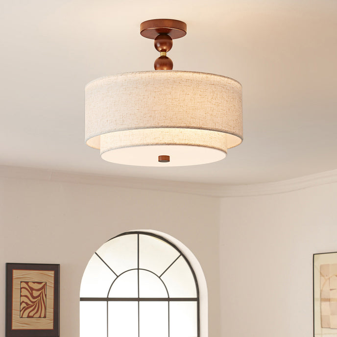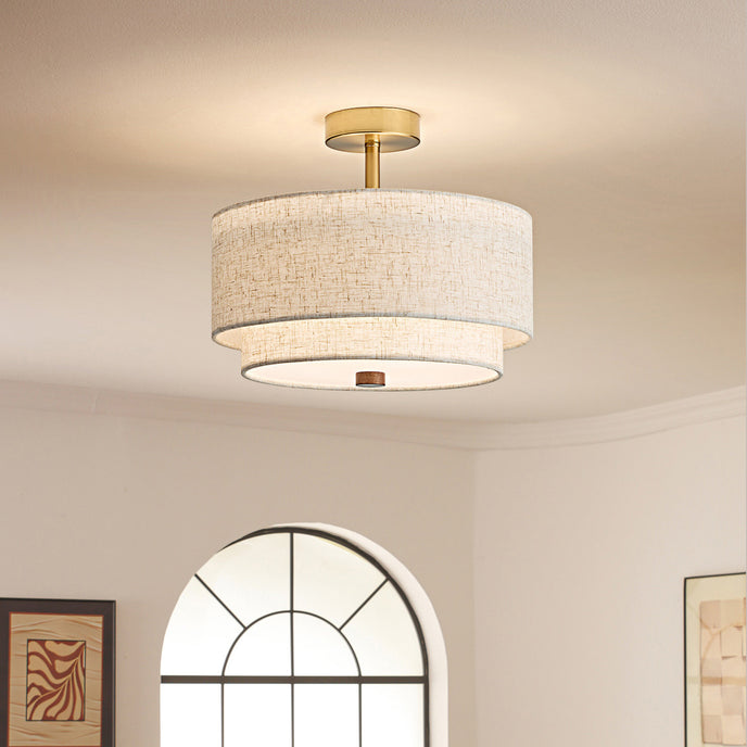 The Ophelia Ceiling Light by Mooijane showcases an elegant double-cylinder design, wrapped in soft-textured fabric and accented with warm wood and metal details. Drawing inspiration from classic interior lighting, it provides soft, even illumination, creating a tranquil and inviting atmosphere in living rooms, bedrooms, or dining rooms.
