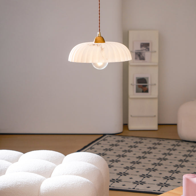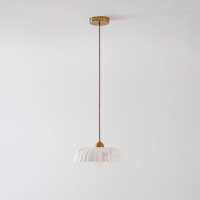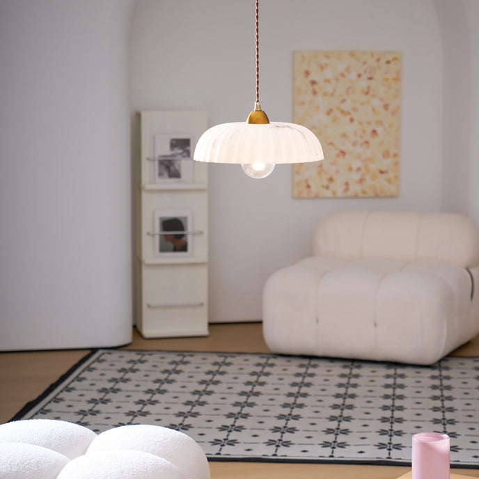 Sculptural and serenely elegant, the Orielle pendant lamp is crafted from warm metal with a delicate resin shade that mimics the texture of natural alabaster, emitting a warm, cozy atmosphere and artistic flair. With its soft sheen and elegant shape, it adds a touch of sophisticated artistry to a dining room, bedroom or entryway. A signature piece from Mooijane, it adds a timeless touch to both modern and classic interiors.