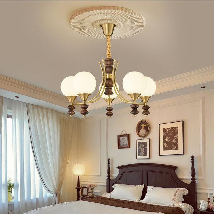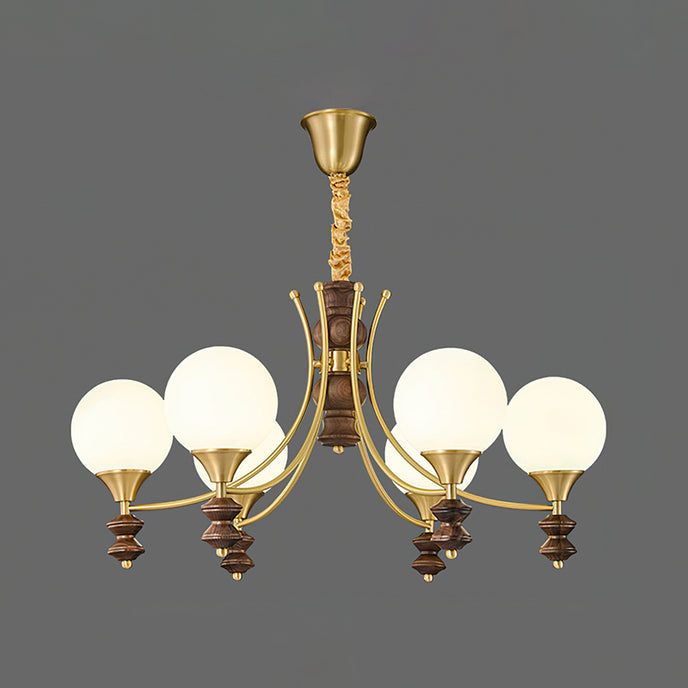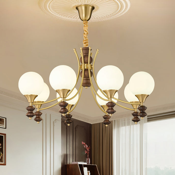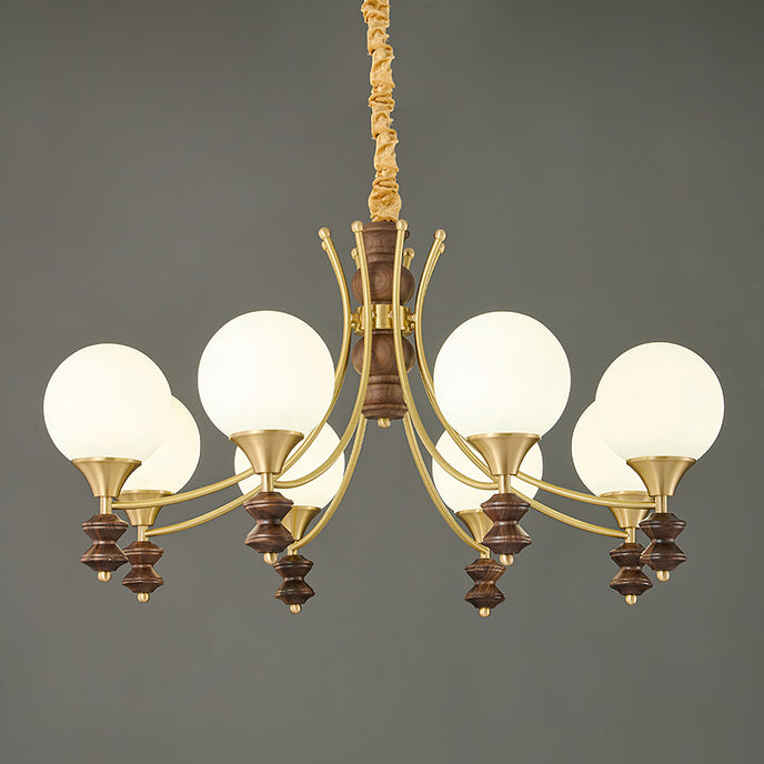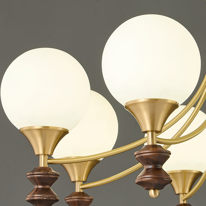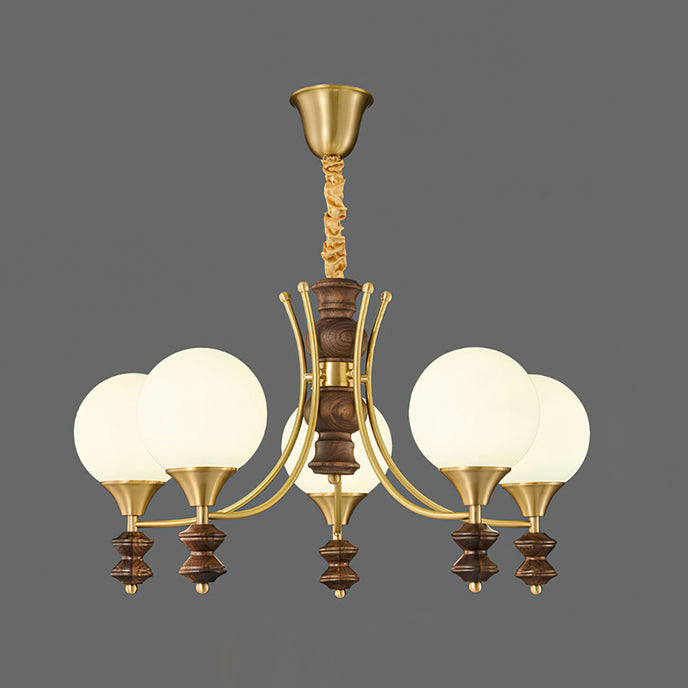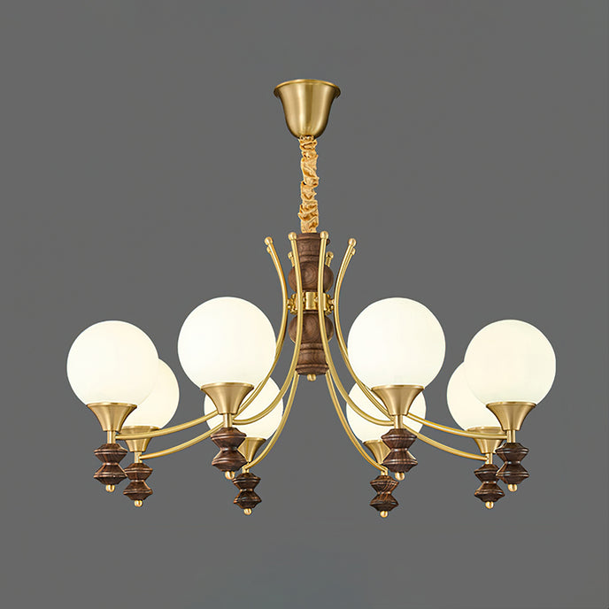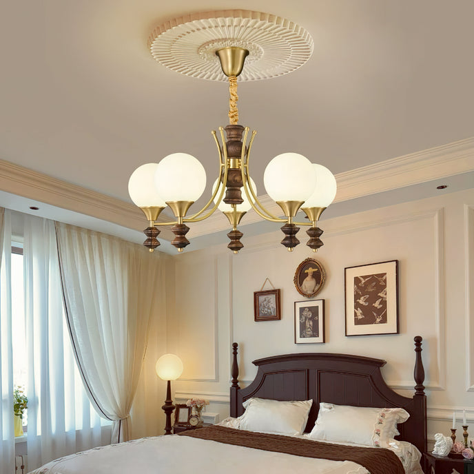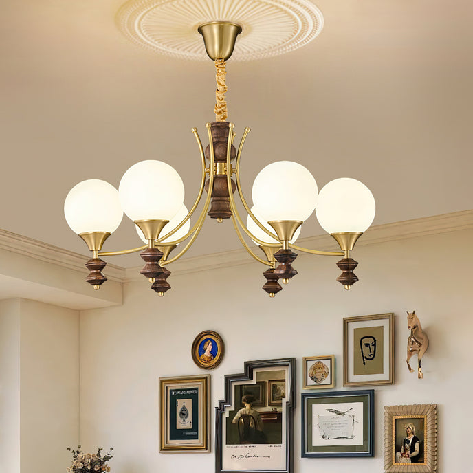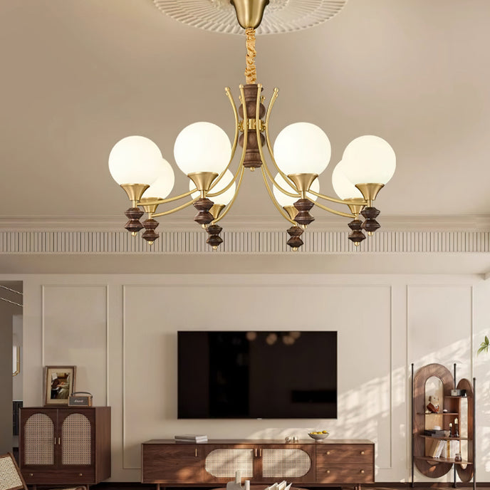 Sophisticated elegance meets timeless design with the Orillia Chandelier! Featuring a blend of brass and rich wooden elements, paired with soft, glowing orbs, this chandelier elevates any space with its regal charm. Perfect for dining rooms, living spaces, or adding a touch of luxury to your home decor.