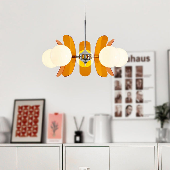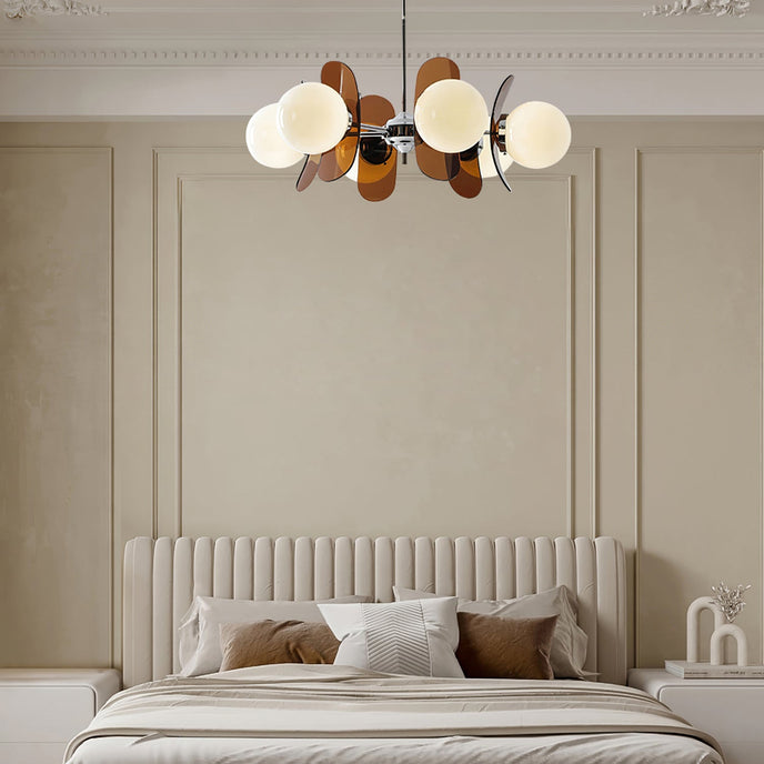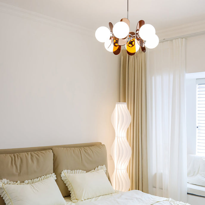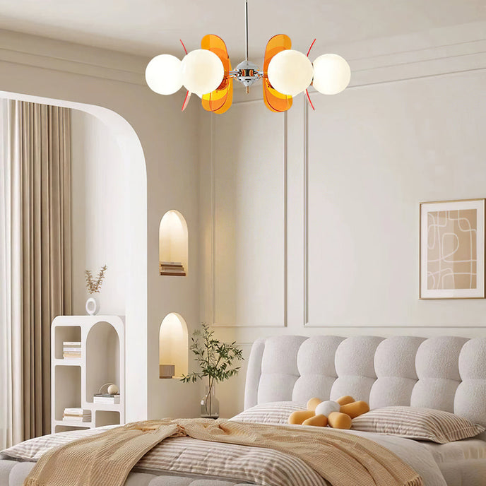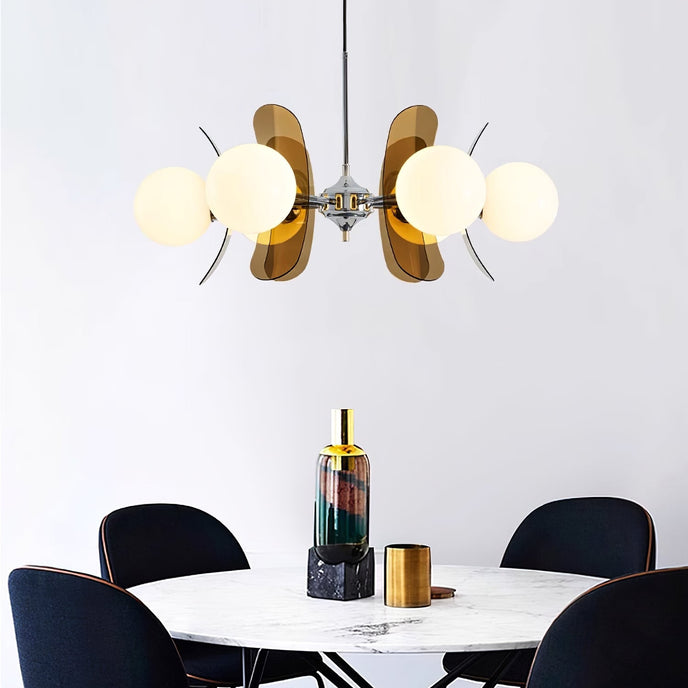 Illuminate your modern space with the elegant and unique glow of the Phosphorescent Chandelier. The delicate stand and soft glass lampshade, made from high-quality iron material, create a warm and artistic lighting effect. Enhance your interior with the chic design and refined materials of this functional yet stylish decoration.