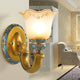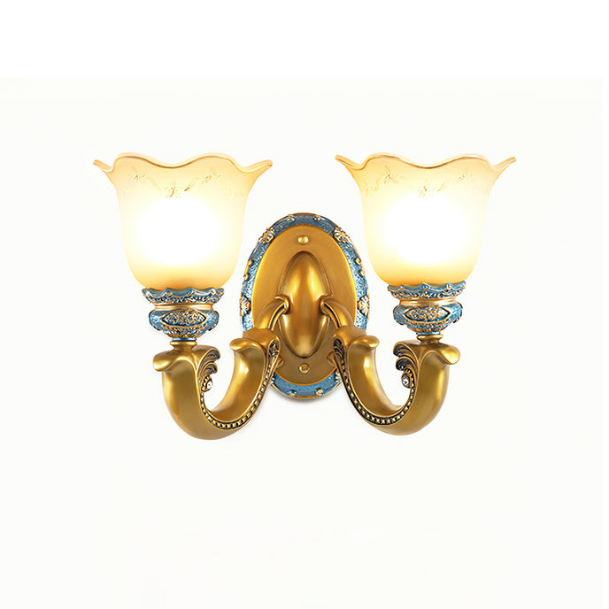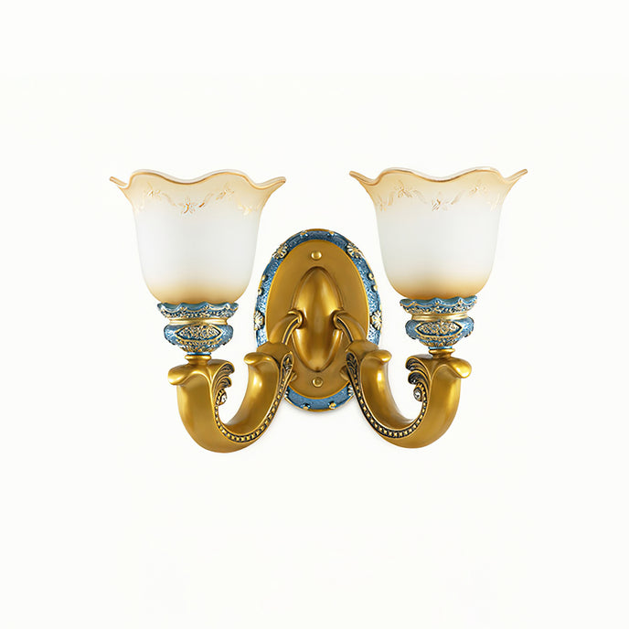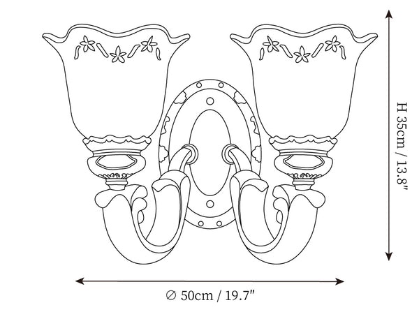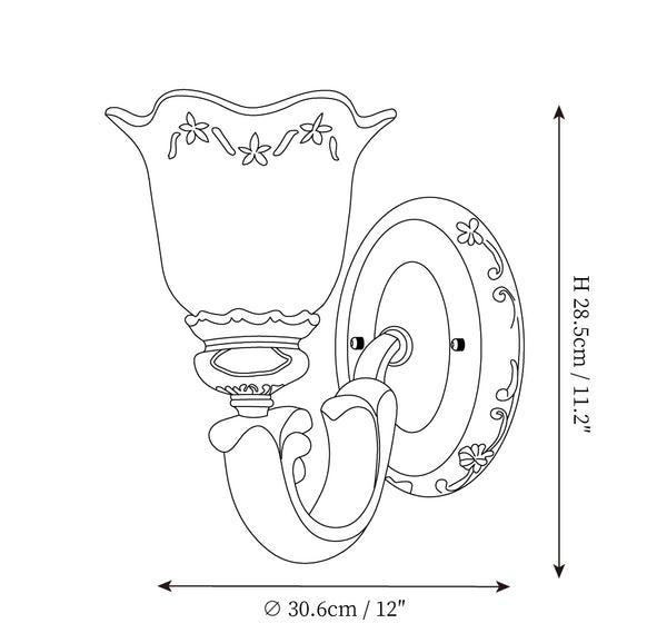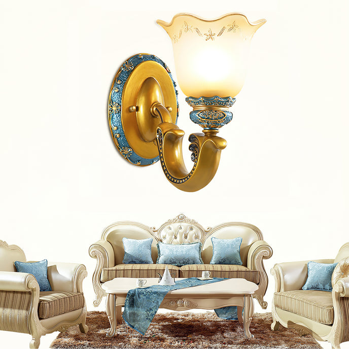 Introducing the Royal Oppai Flower Wall Lamp, a piece of luxurious craftsmanship bringing a royal charm to your décor. Carved from strong iron and elegant resin, the lamp features a beautiful floral pattern and a delicate glass lampshade that diffuses a warm light. With its exquisite design and materials, the Royal Oppai Flower Wall Lamp is sure to be a standout addition to any living room, bedroom, or hallway.