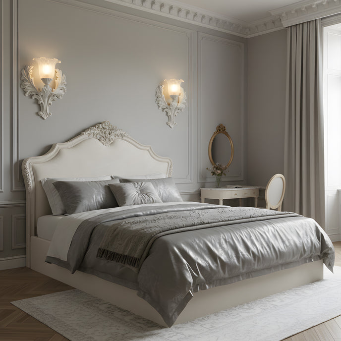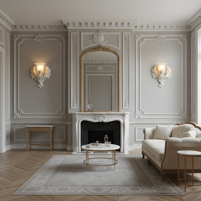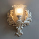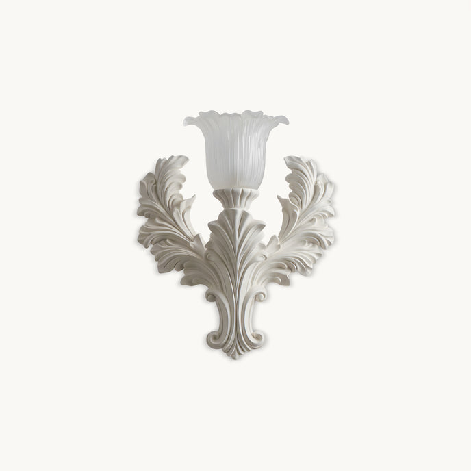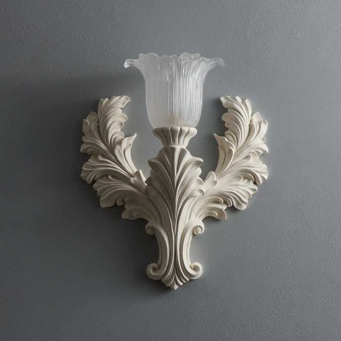 The Sitrali Wall Lamp from Mooijane combines artistic detail with classic charm. Its sculpted resin base features sweeping leaf motifs that evoke a hand-carved, vintage elegance, while the flower-shaped glass shade softens the light into a warm, inviting glow. Sturdy metal accents add durability and refinement. Perfect for hallways, living rooms, or bedrooms, the Sitrali brings Mooijane’s signature blend of decorative beauty and timeless sophistication to any interior.