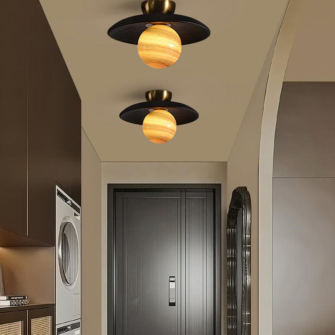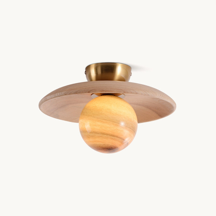 The Tanner Ceiling Light from Mooijane blends organic warmth with refined modernity, creating a fixture that feels sculptural and serene. Its wide, hand-finished white wood canopy showcases natural grain patterns, adding depth and character to any interior. Beneath it, a rounded glass globe emits a soft, ambient glow that enhances the wood’s warm tones.