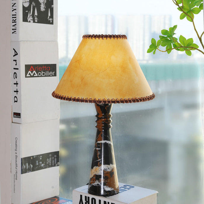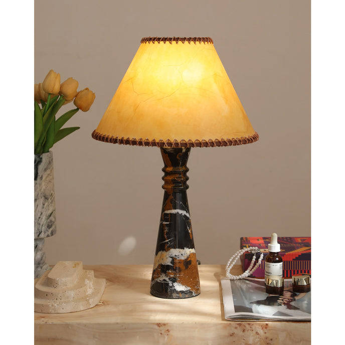 The Timiko Table Lamp by Mooijane blends sculptural elegance with artisanal warmth. A slender marble base with natural veining makes each piece unique, while the parchment shade casts a soft, golden glow. Balanced and timeless, it adds quiet luxury to bedside tables, living rooms, or reading corners.
