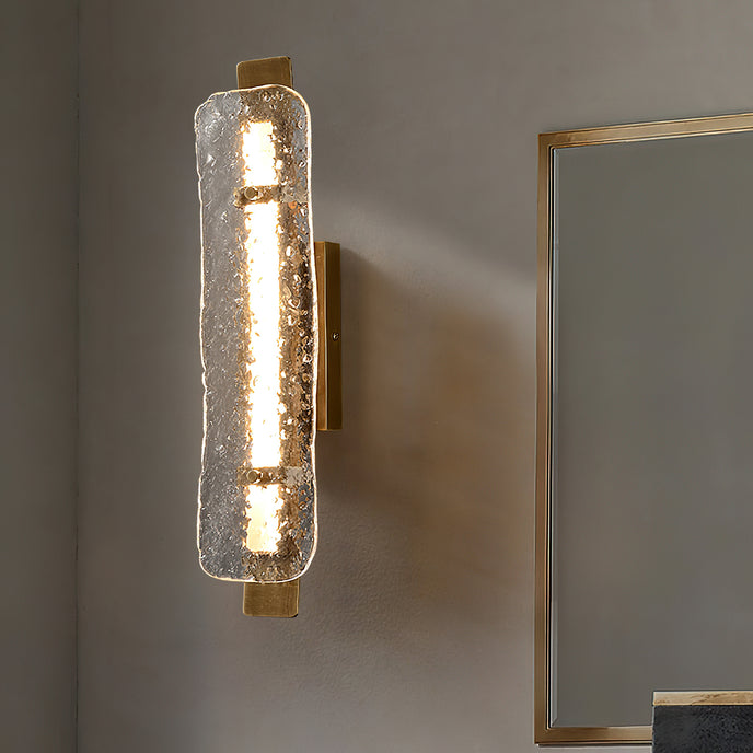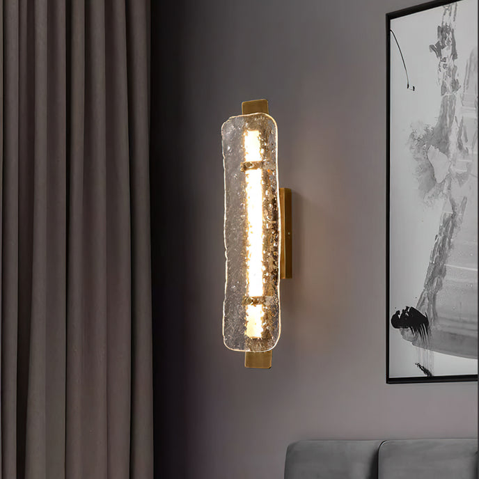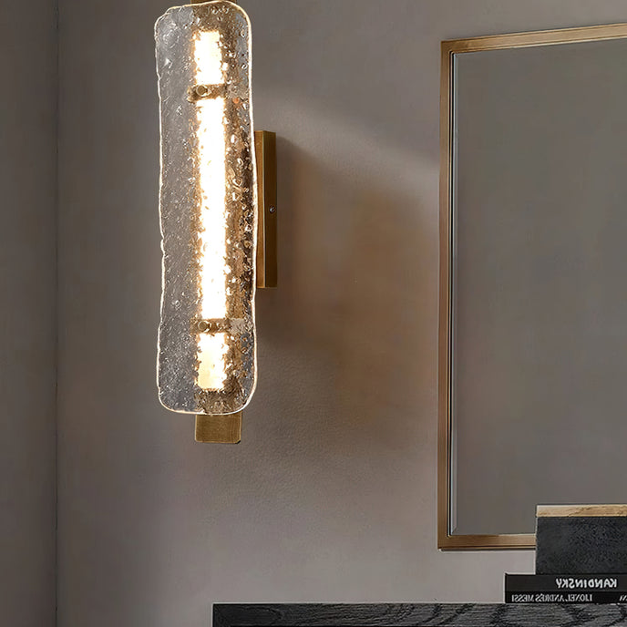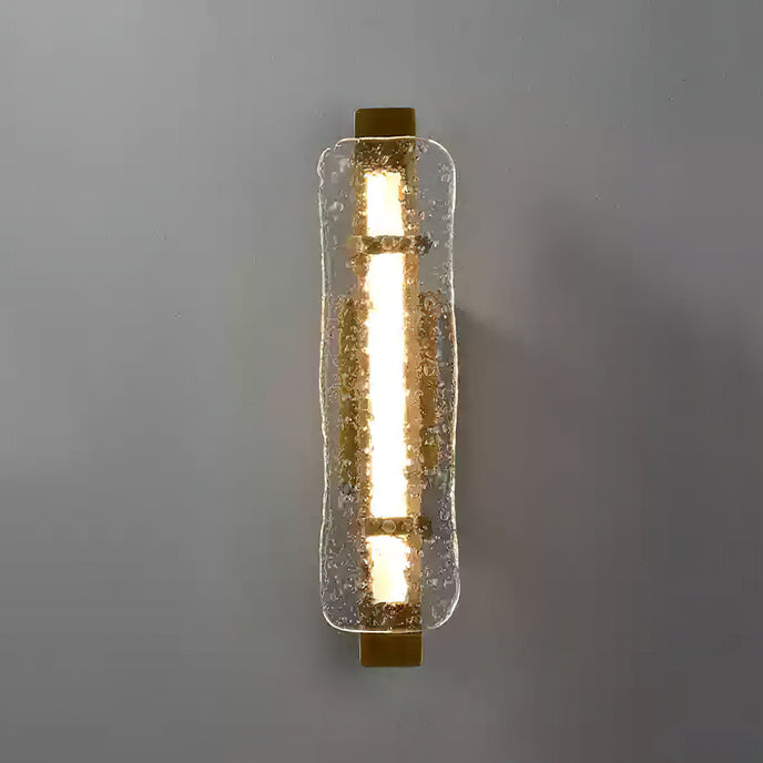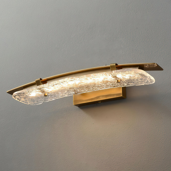 Introducing the Wythe Wall Lamp, a luxurious addition to any space. Crafted with a brass body and antique bronze finish, this lamp exudes sophistication. The hand-made glass shade features a unique water pattern, emitting a soft and elegant glow. Elevate your decor with this high-grade and delicately designed piece.