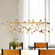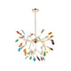 Bold and colorful, this Agate Flake Chandelier will be an eye-catching centerpiece in your home or office. Beautiful onyx in one color or shade dangles from delicate gilded arms, creating a unique and elegant look.