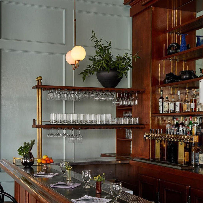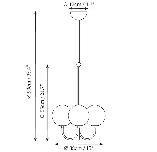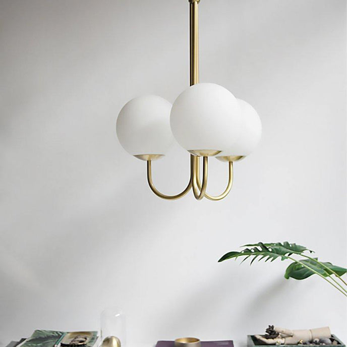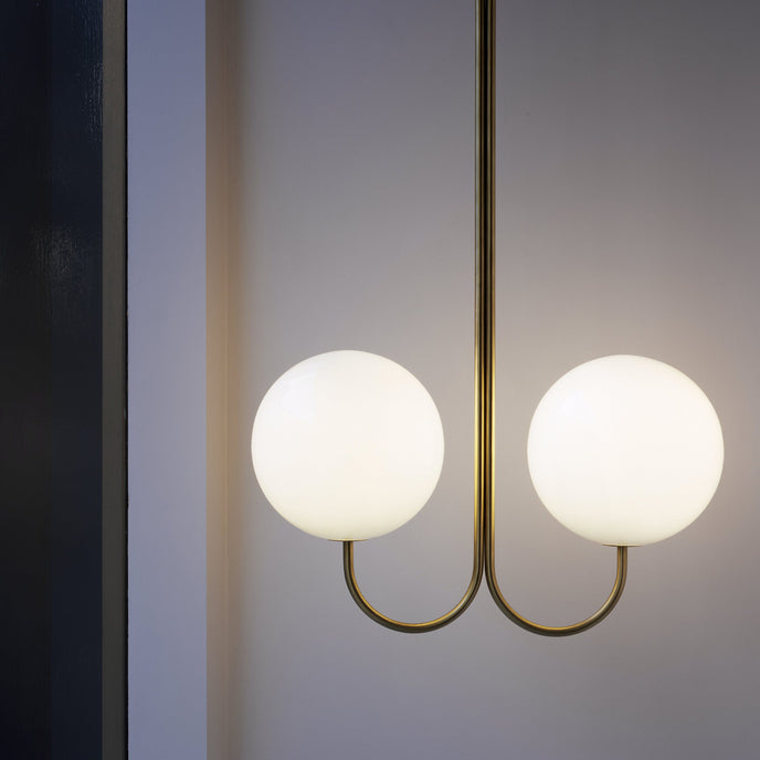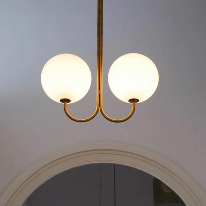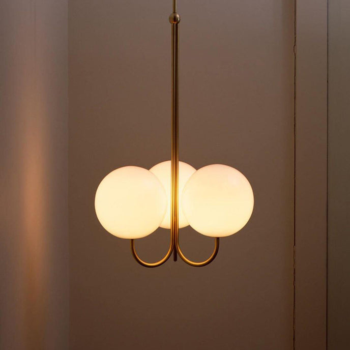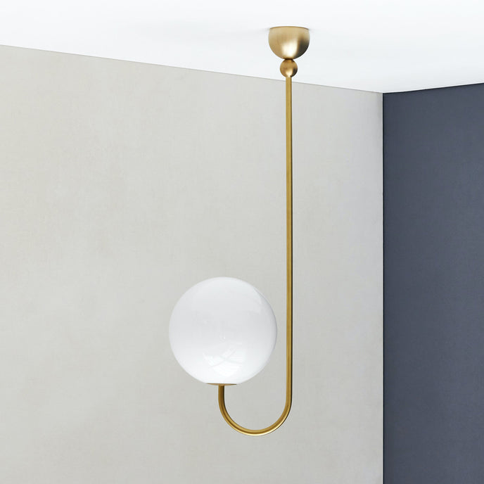 Elegant, airy, and refined, the Angle Chandelier offers a particularly simple design. This pendant light reveals an opaline glass sphere that diffuses the light in a pleasant way.