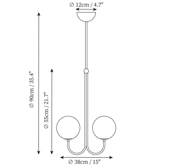 - 2 Heads Size: Dia 38cm x H 90cm / ∅ 15″ x H 35.4″
