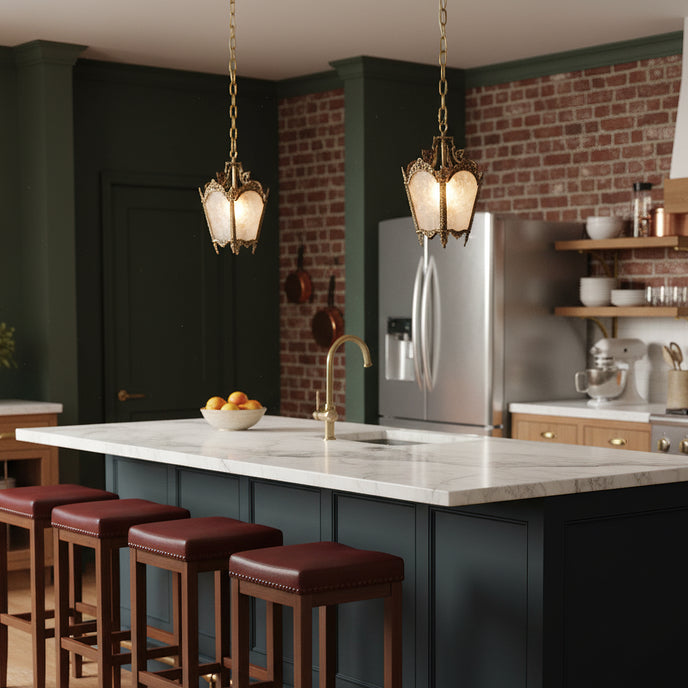 Upgrade your interior with our Antique Lantern Pendant Lamp from Mooijane. The lantern design adds a romantic and mysterious touch, while the delicate ice glass lampshade adds artistic beauty. Illuminate any indoor area with its soft and elegant lighting. Perfect for kitchens, bars, workshops, and more.