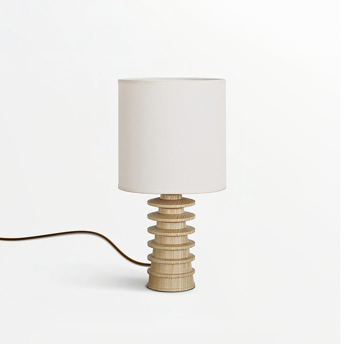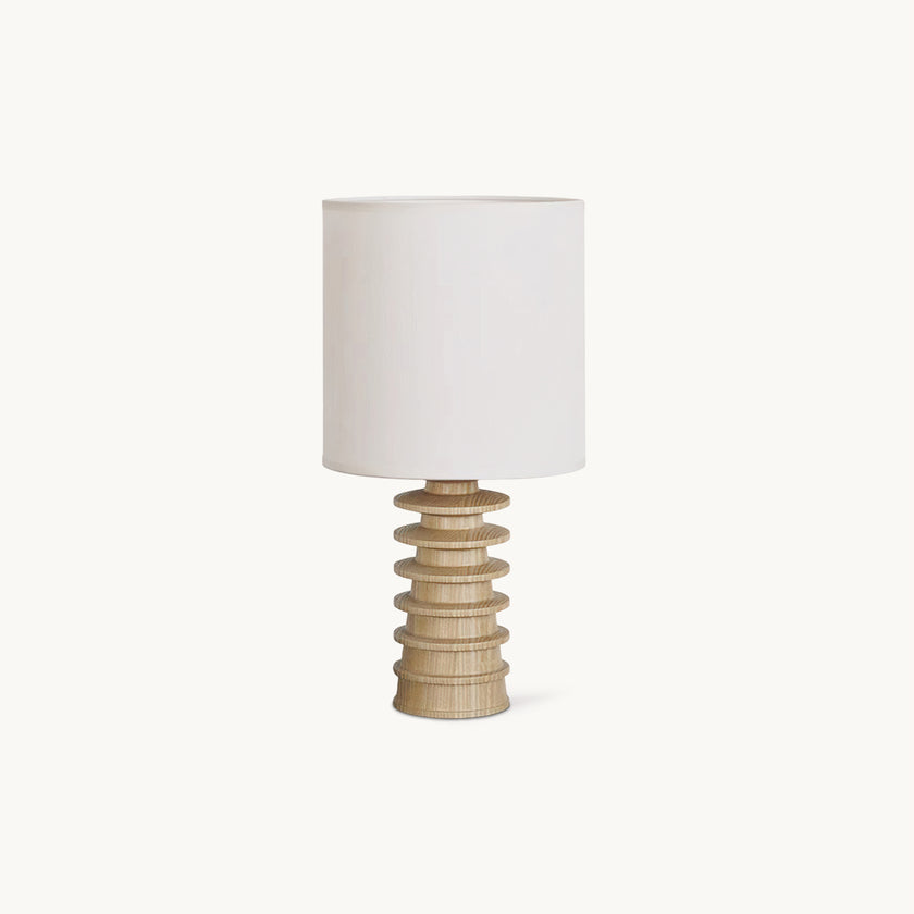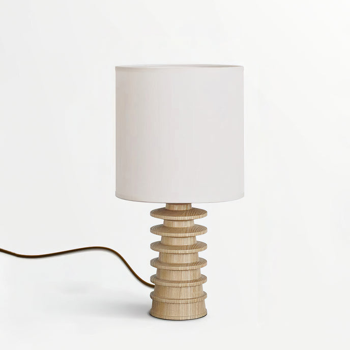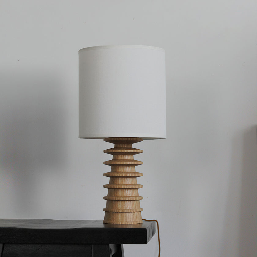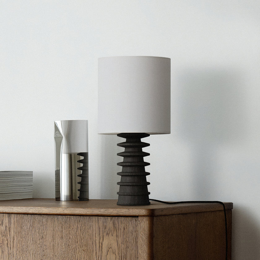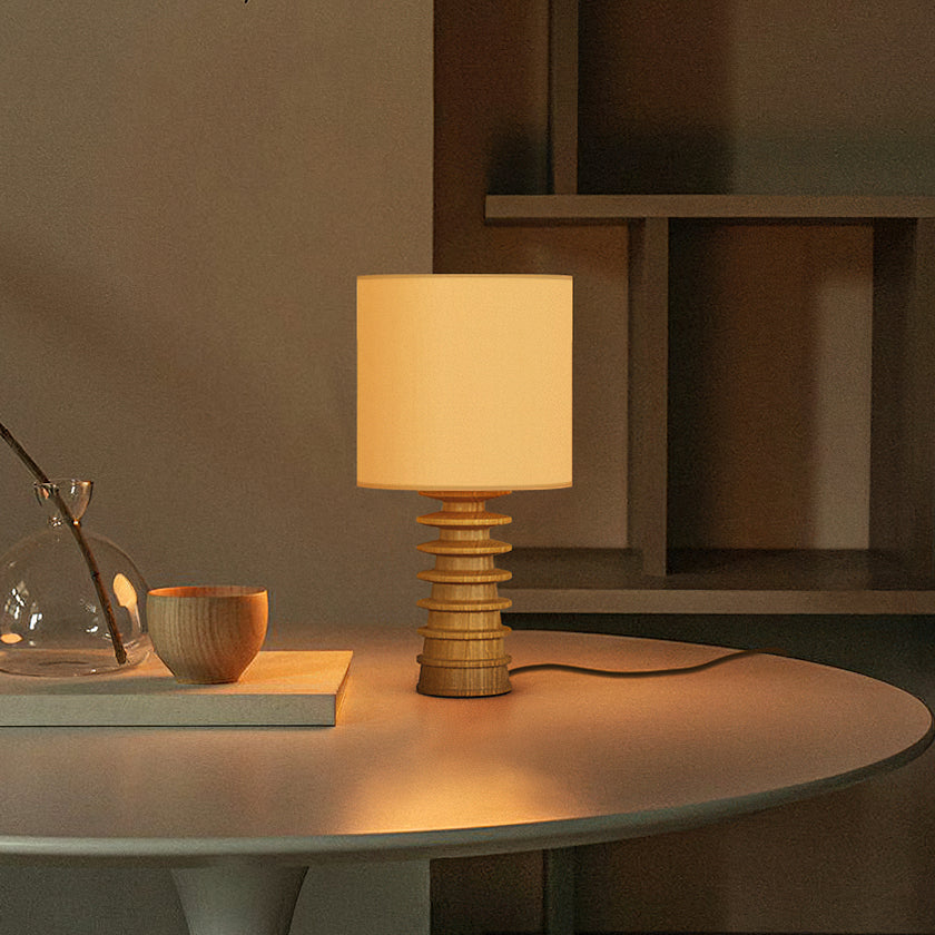 Bring sculptural simplicity into your space with the Arieah Table Lamp by Mooijane. Featuring a finely turned wooden base with a striking stacked form and a clean cylindrical shade, this table lamp balances texture and geometry for timeless appeal. Whether in light or dark wood, it casts a warm, inviting glow—perfect for bedside tables, desks, or cozy reading corners.