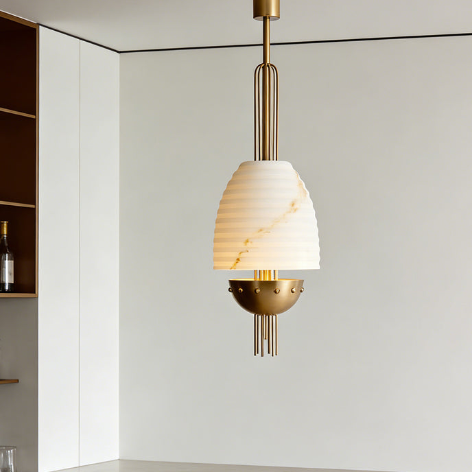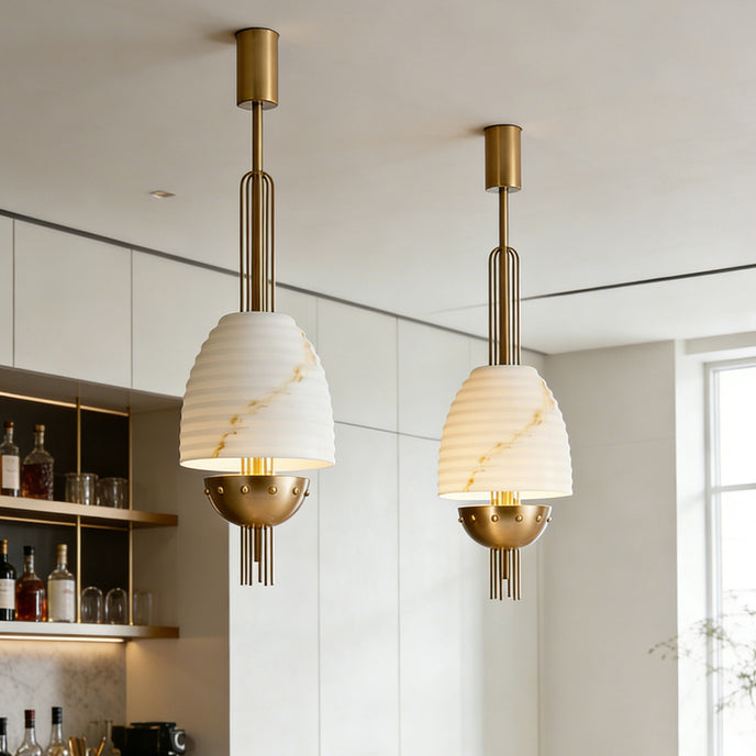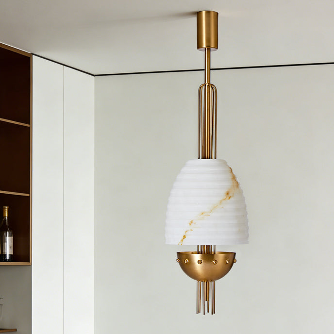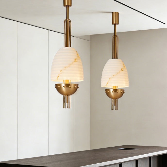 The Aureston Pendant Light by Mooijane blends sculptural form with vintage-modern elegance. Crafted from faux alabaster and iron, it features a softly tapered shade with subtle veining and a refined metal frame that adds structure and detail. Ideal for dining areas, entryways, and thoughtfully designed interiors, it brings warm ambient light and sophisticated character to any space.