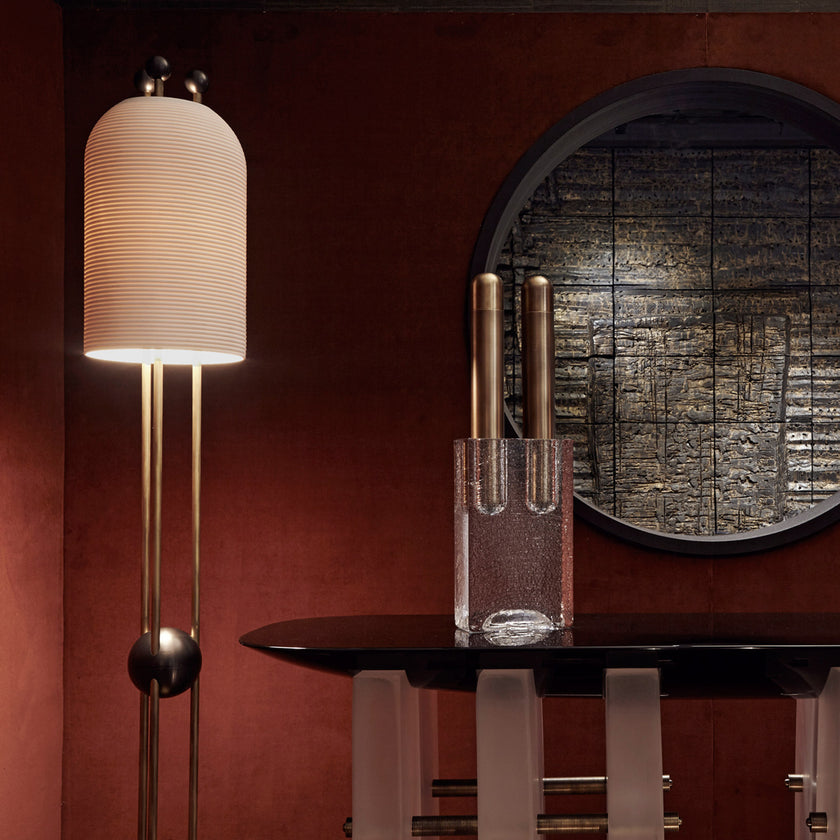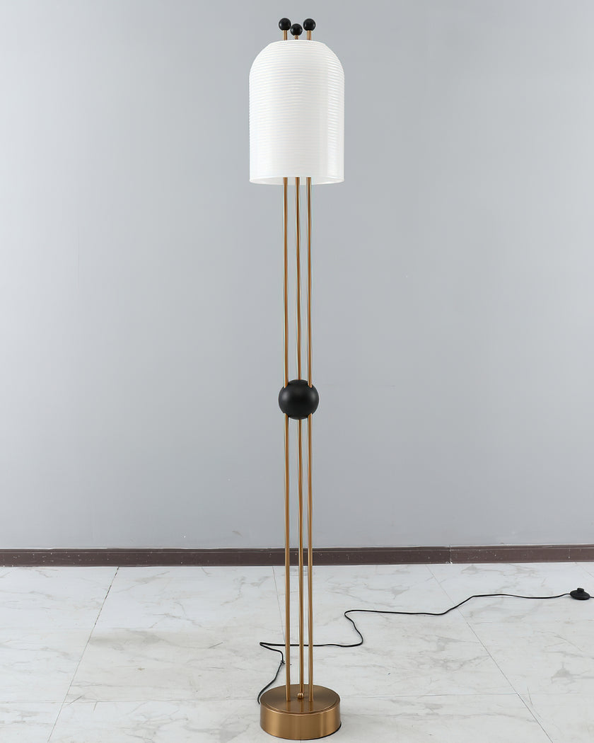 It is introducing the Bertha Floor Lamp by Mooijane - a stunning fusion of modern style and elegant design. Featuring a durable iron and glass construction, its crisp white shade adds a touch of sophistication to any room. Illuminate your home with style and elegance, making this chandelier the perfect centerpiece of any modern decor.