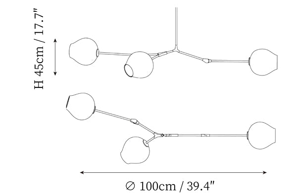 - 3 Heads Size: Dia 100cm x H 45cm / ∅ 39.4″ x H 17.7″