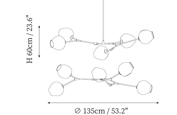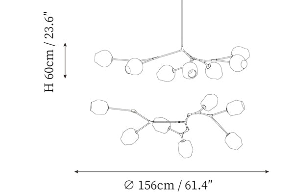 - 7 Heads Size: Dia 156cm x H 60cm / ∅ 61.4″ x H 23.6″