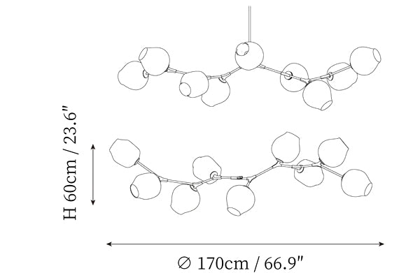 - 9 Heads Size: Dia 170cm x H 60cm / ∅ 66.9″ x H 23.6″