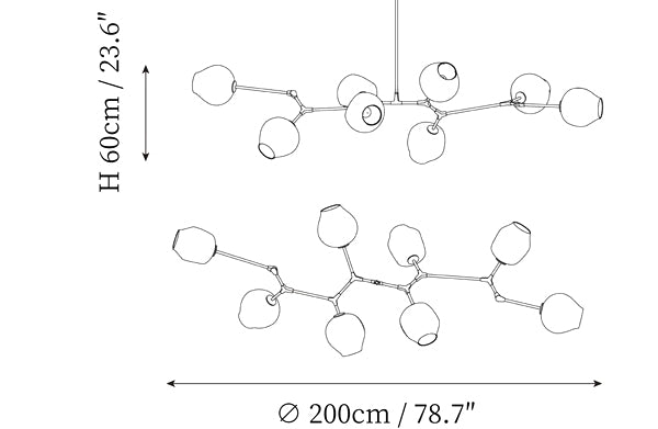 - 8 Heads Size: Dia 200cm x H 60cm / ∅ 78.7″ x H 23.6″