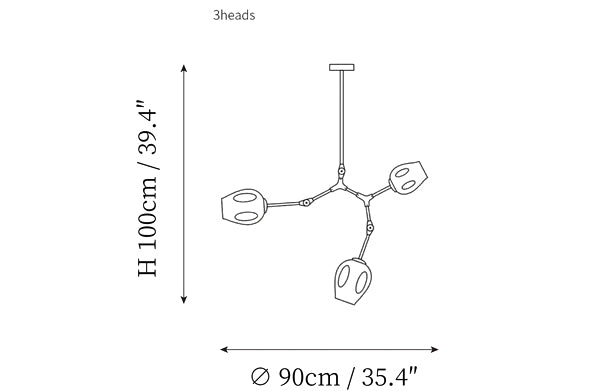 - 3 heads size: Dia 90cm x H 100cm / ∅ 35.4″ x H 39.4″