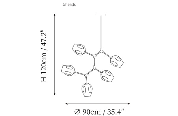 - 5 heads size: Dia 90cm x H 120cm / ∅ 35.4″ x H 47.2″